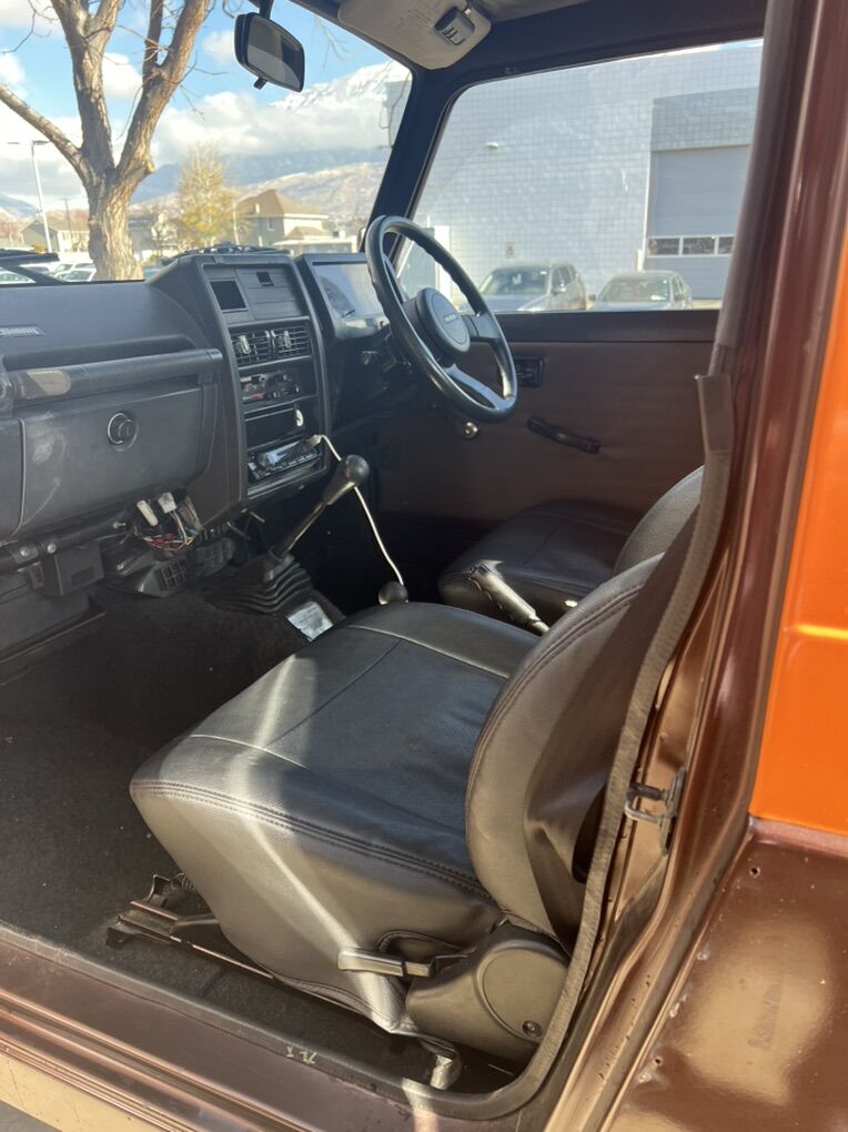 1995 Jimny / Samurai. To be clear as mud, this is not a Samurai it is an import. It is a perfectly running 1995 Suzuki Jimny, the short VIN Number can’t decode on the website. VIN JA11327194. It is right hand drive, which is great for checking your mailbox. It has a 5 speed manual transmission. 660cc 3 cylinder turbo. 4 wheel drive manual locking hubs. Runs and drives great, recent engine work, crankshaft rod & main bearings, rings, valve job, turbo, timing belt, water pump & thermostat. New 205/75R15 Kelly Edge All Terrain tires.Overall goodcondition, fun to drive, especially off road. Current kilometers is 189603