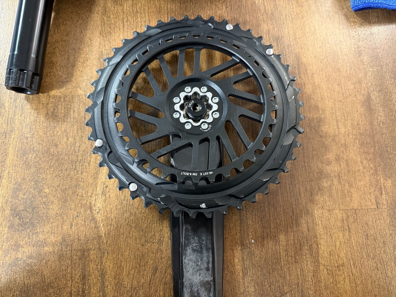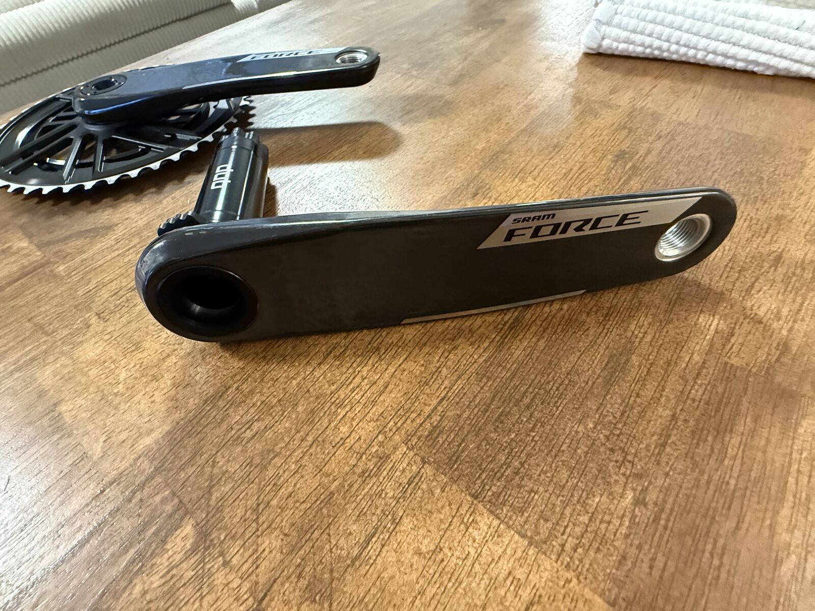 ApplePayDid a Force groupset on my new road bike this year and deciding to go a different direction with dimensions and tooth count. Cranks have VERY minimal miles on them and 90% of those 100 miles have been on the bike trainer. They are in pristine condition besides one little scuff on the non drive-side arm where I rubbed it taking it into the house first day I got it (picture of it last). -170mm crank length -46/33t chainrings -DUB spindle Message me if interested! OBO. Buyer pays shipping.