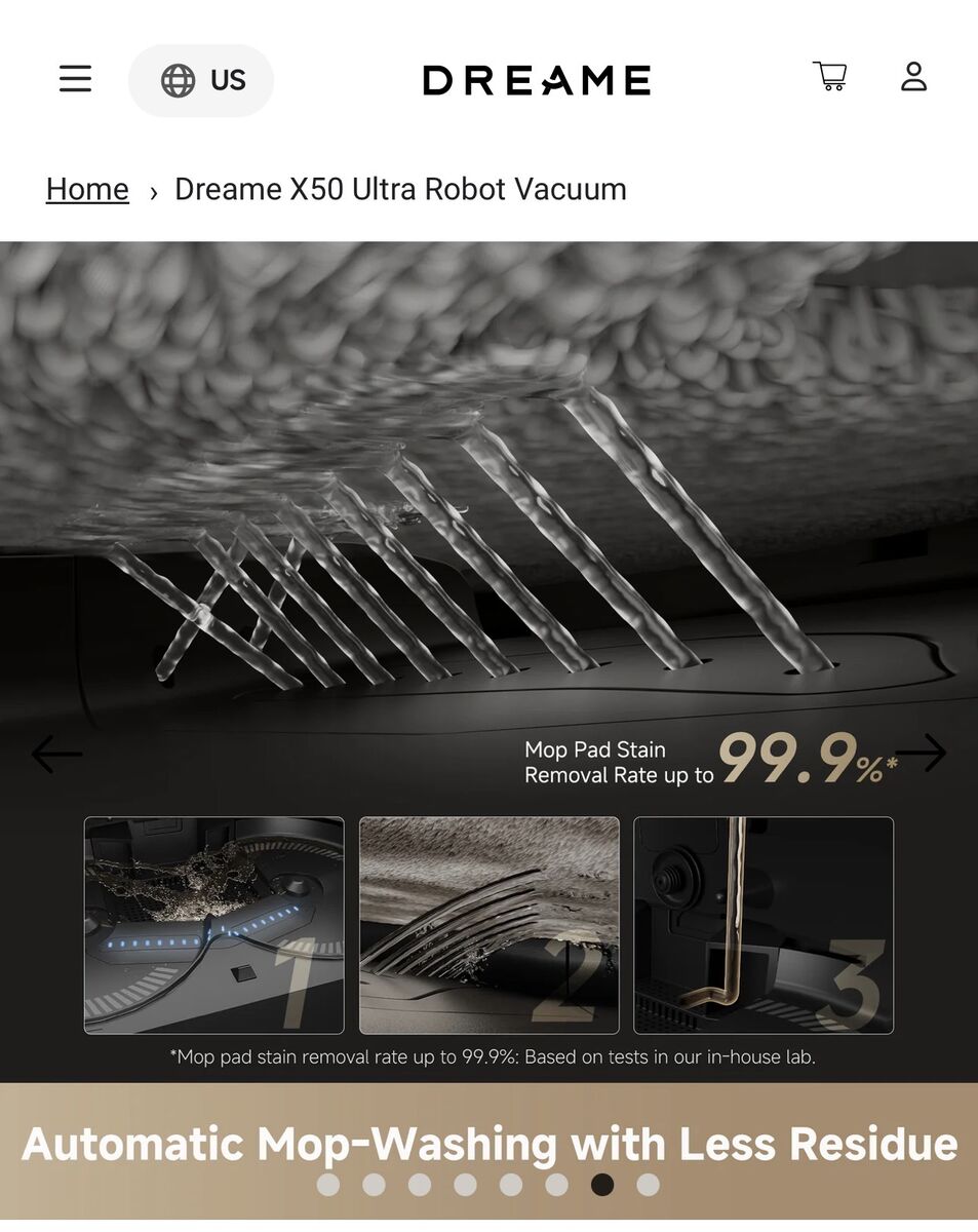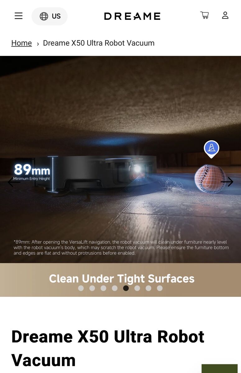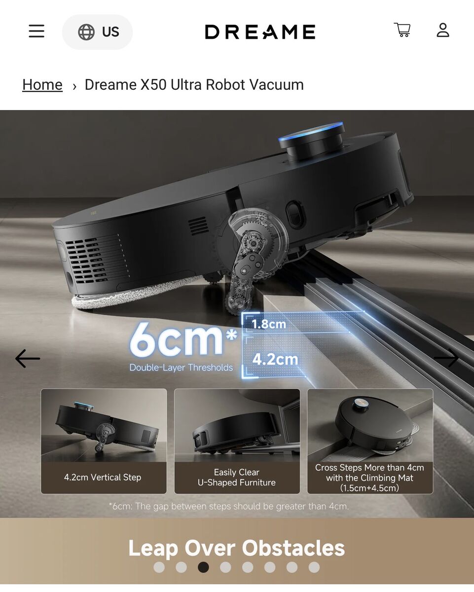 About this item - Cross Thresholds and Barriers: X50 Ultra utilizes robotic retractable legs to conquer door tracks, thresholds, and obstacles up to 2.36 in. It uses shocker absorbers and other innovations to minimize impact and noise to delivery a quieter cleaning experience.