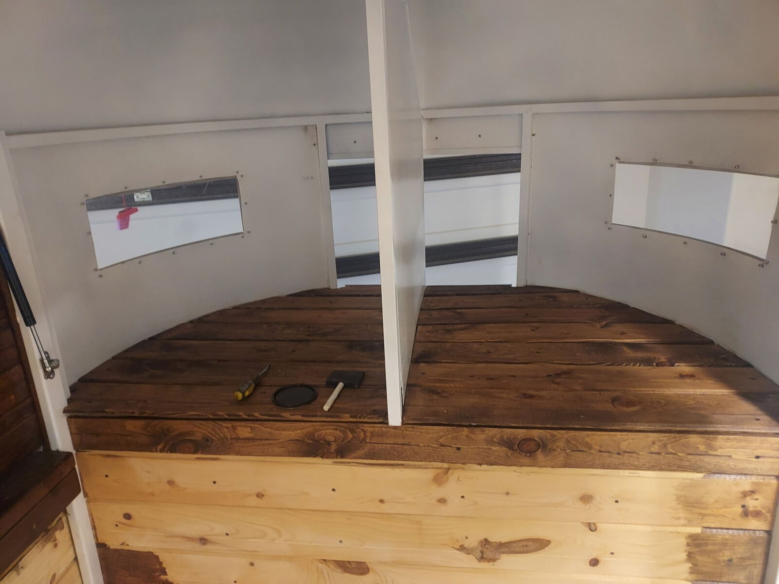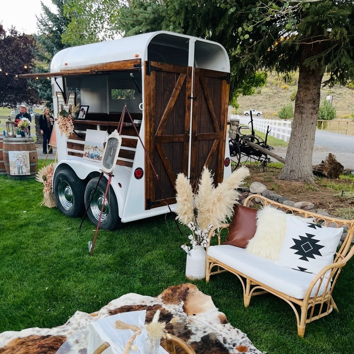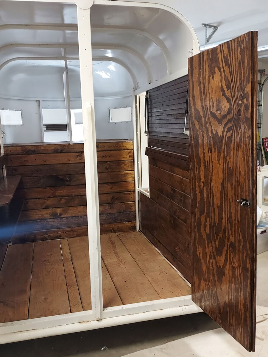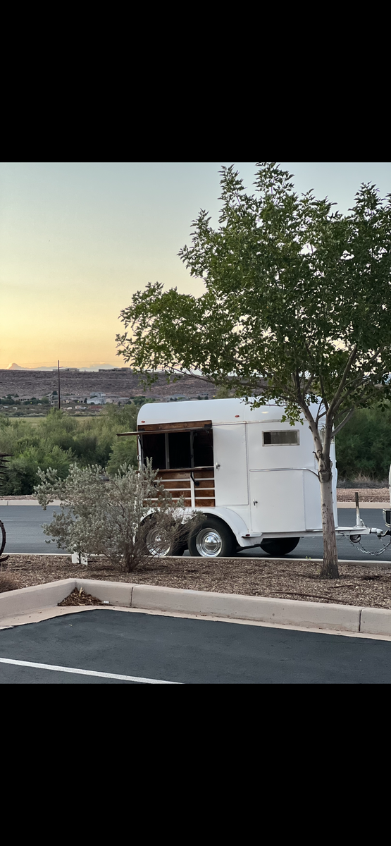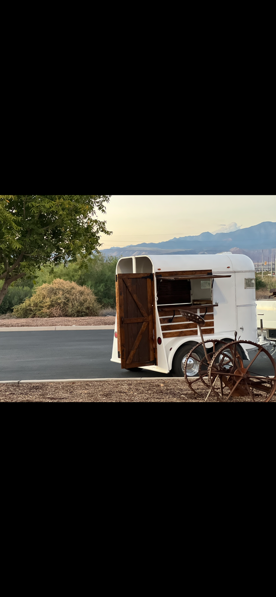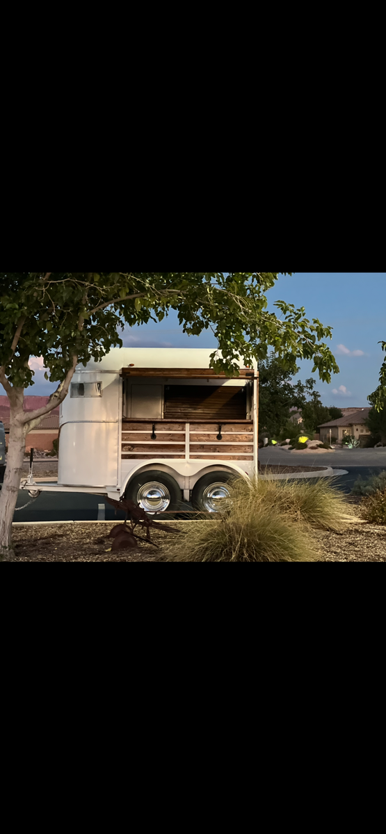 Tandom axal horse trailer converted to serving trailer. Wired for inside and outside led lighting. Easy to pull, compact and versatile for all events.