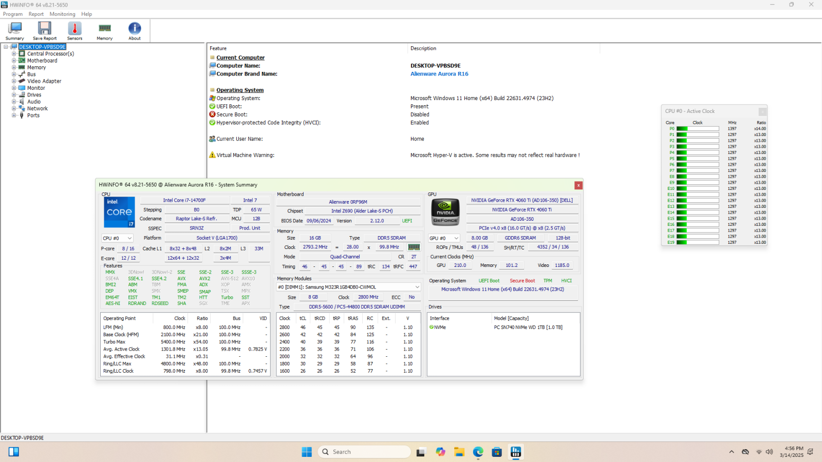 Dominate your games with the Alienware Aurora R16. Featuring an Intel i7-14700F, RTX 4060Ti, and 1TB SSD, this desktop delivers high-performance gaming in a sleek design.