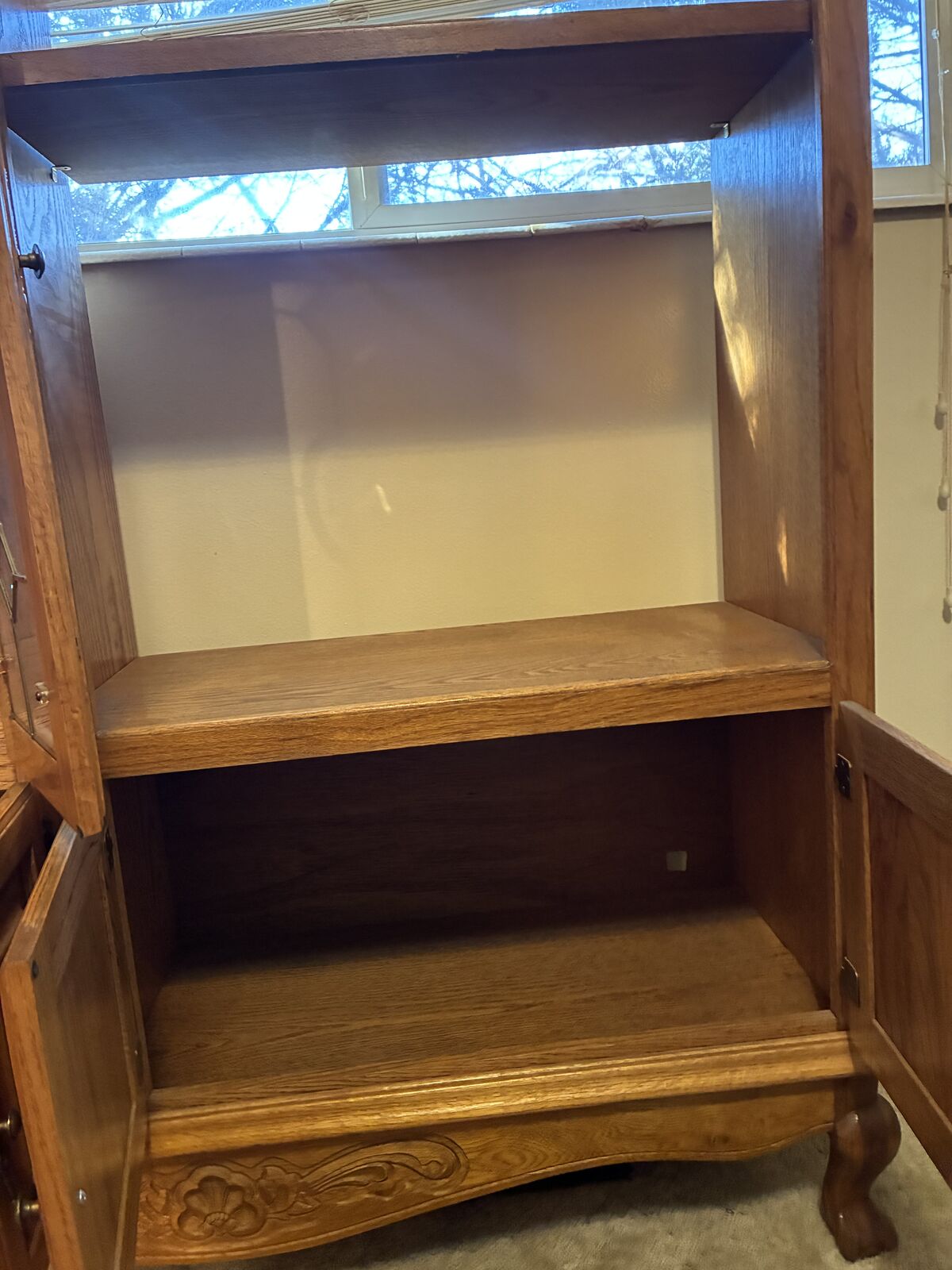 Venmo1998 light solid oak entertainment center. Great condition no chips in the wood. Approx. measurements 58” Tall x 57.5” Wide x 16” Depth. Located in Lehi. Pick up only. It is very heavy I have 2 people who can help load it up. Will need to go down some stairs.