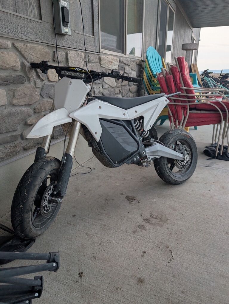 VenmoI’m selling my RTR asking $3200.00. Power 8KW, volts 72V, speed 55+mph, range 30 miles, torque 30%, Suspension fully adjustable. Has 1150 miles on it. Has mag super moto tires, head light. Comes with original tires as well.