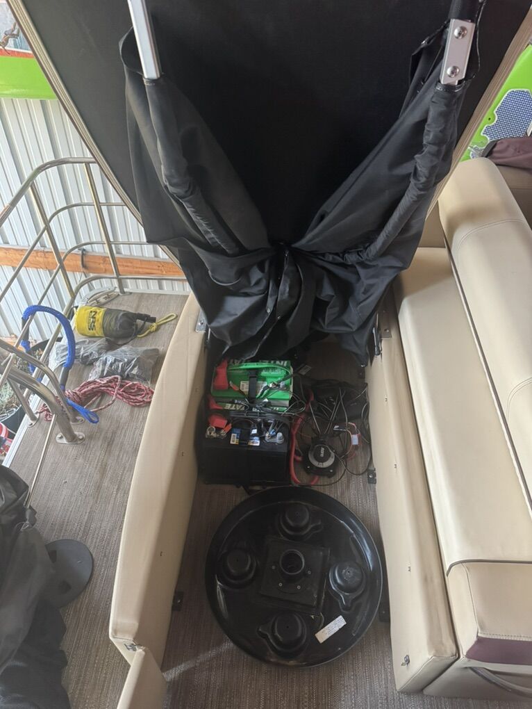 21hours! Clean title in hand great triple toon 2 Bimini tops 200hp motor located in garden city Idaho not Utah!