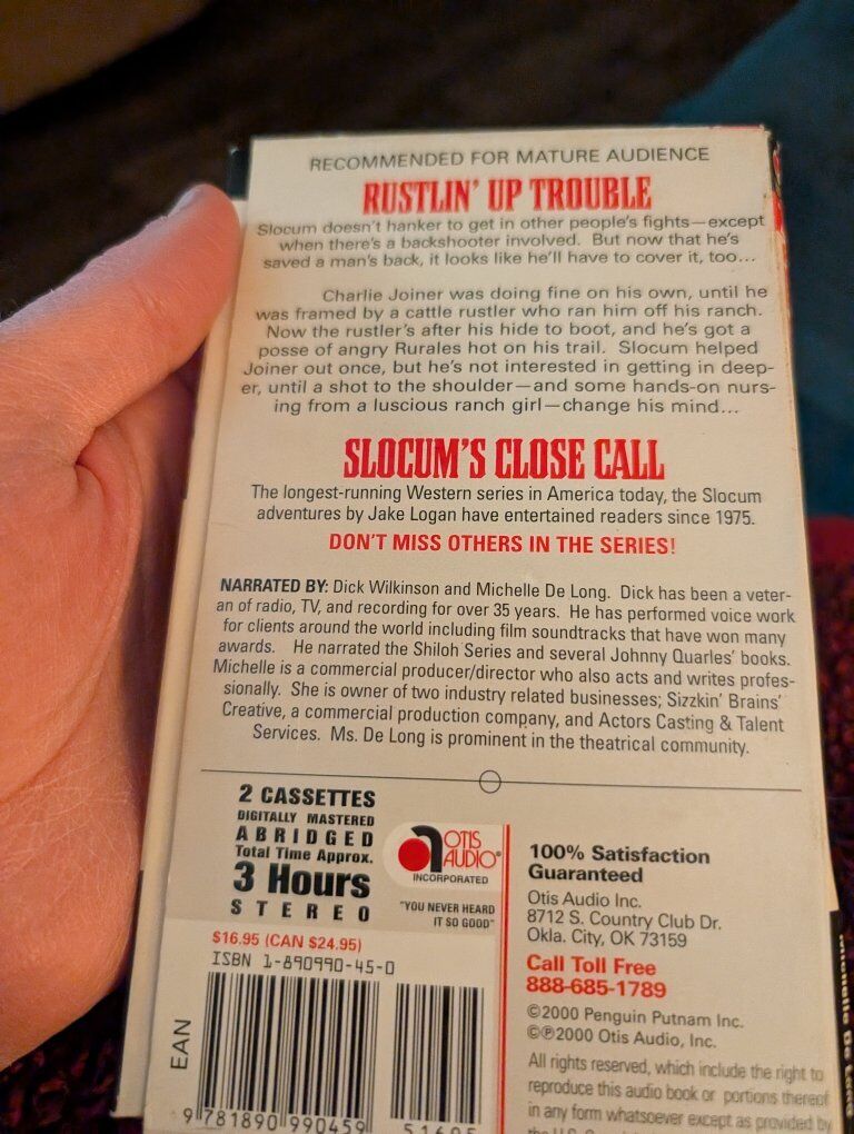 PayPalThe "Jake Logan Slocum's close call audio cassettes" are a collection of fictional narratives written by author Jake Logan. The audio cassettes format allows listeners to enjoy the suspenseful and thrilling stories in English, immersing themselves in the captivating tales crafted by the author. Perfect for those looking for a gripping and engaging listening experience, these close call audio cassettes are sure to keep audiences on the edge of their seats. 5 dollars or best offer. Will ship world wide.