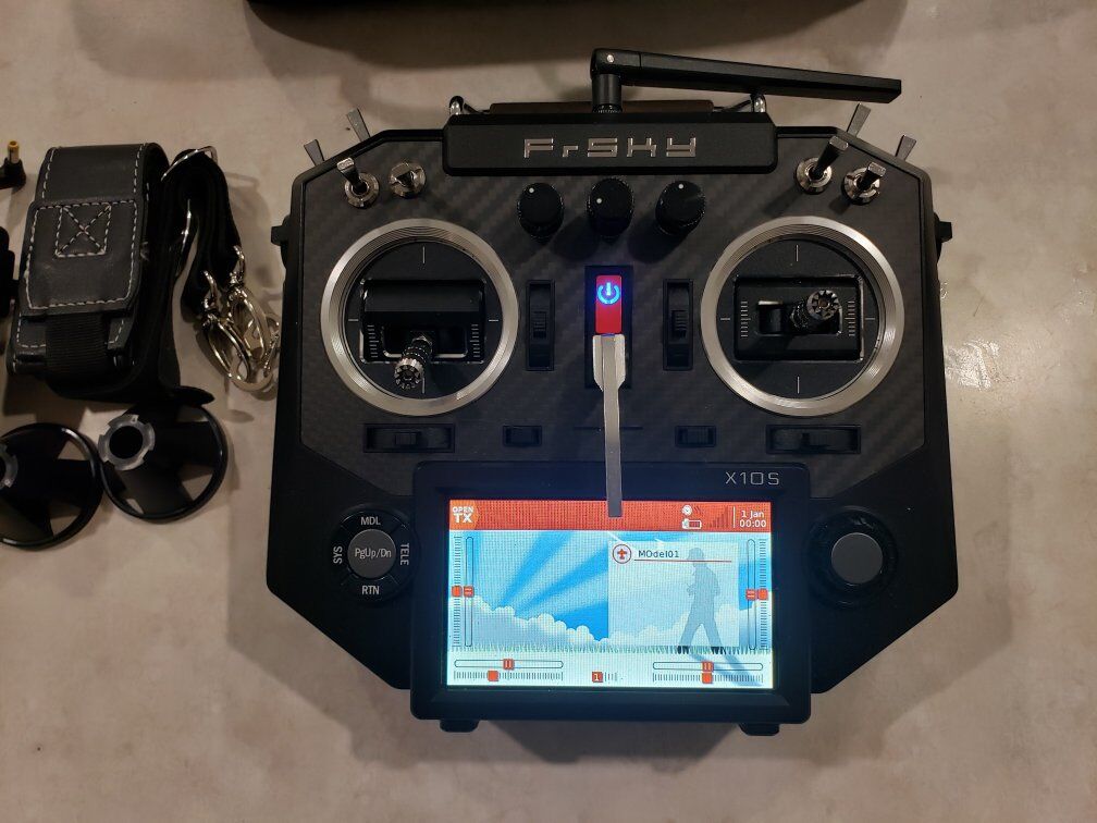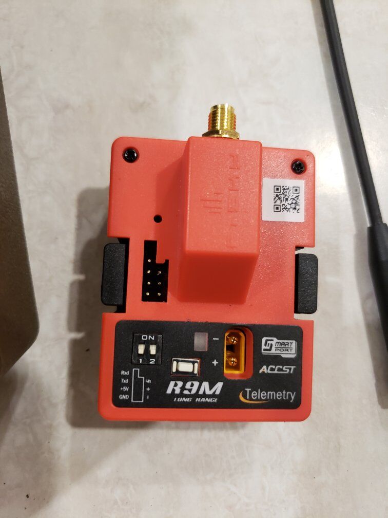 New in Box and Never used. Includes carrying case, charger, neck strap, and the FrSky R9 900 MHz long range transmitter module and antenna.