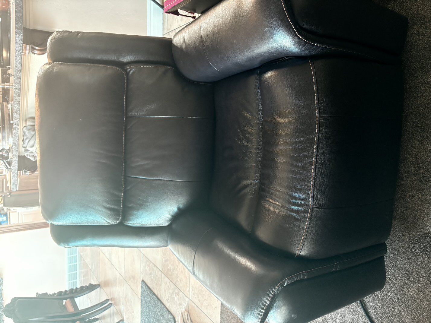 2 Power Recliner Chairs – Black Leather Selling two electric power recliner chairs in great condition. • Smooth power recline • Built-in USB charging ports • Comfortable padded headrest and armrests • Black leather look with contrast stitching • Very clean and fully functional Perfect for living room, basement, or theater setup. Both recline quietly and work great. Selling as a pair. Pickup only.