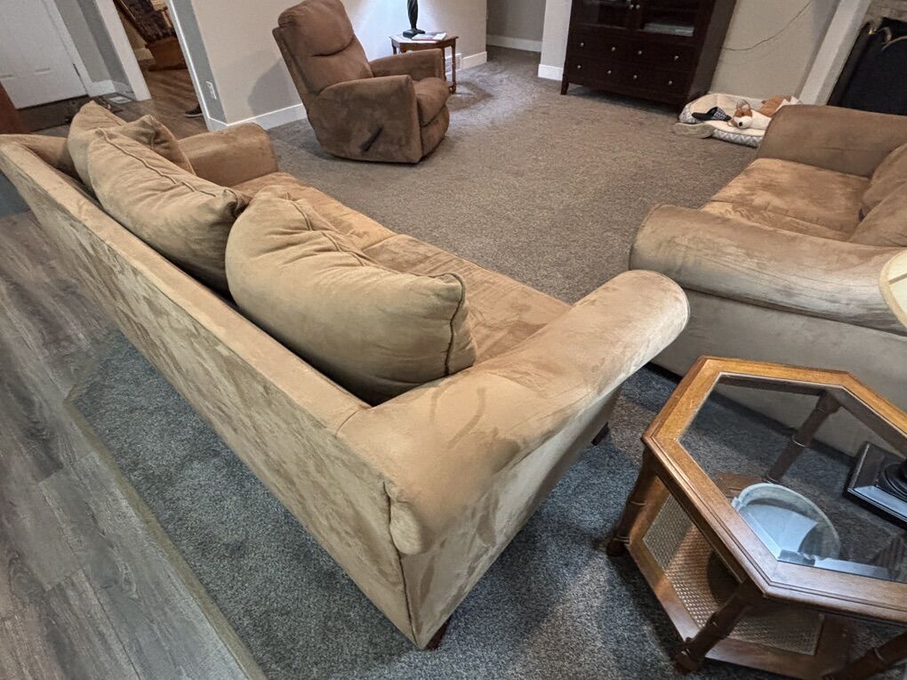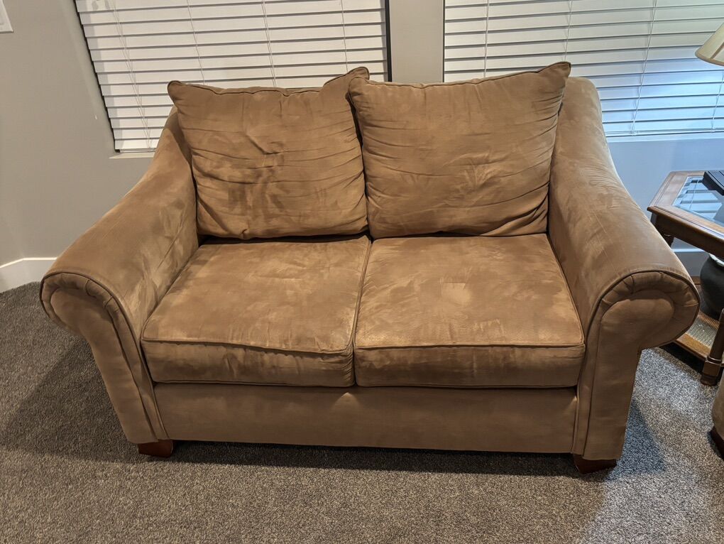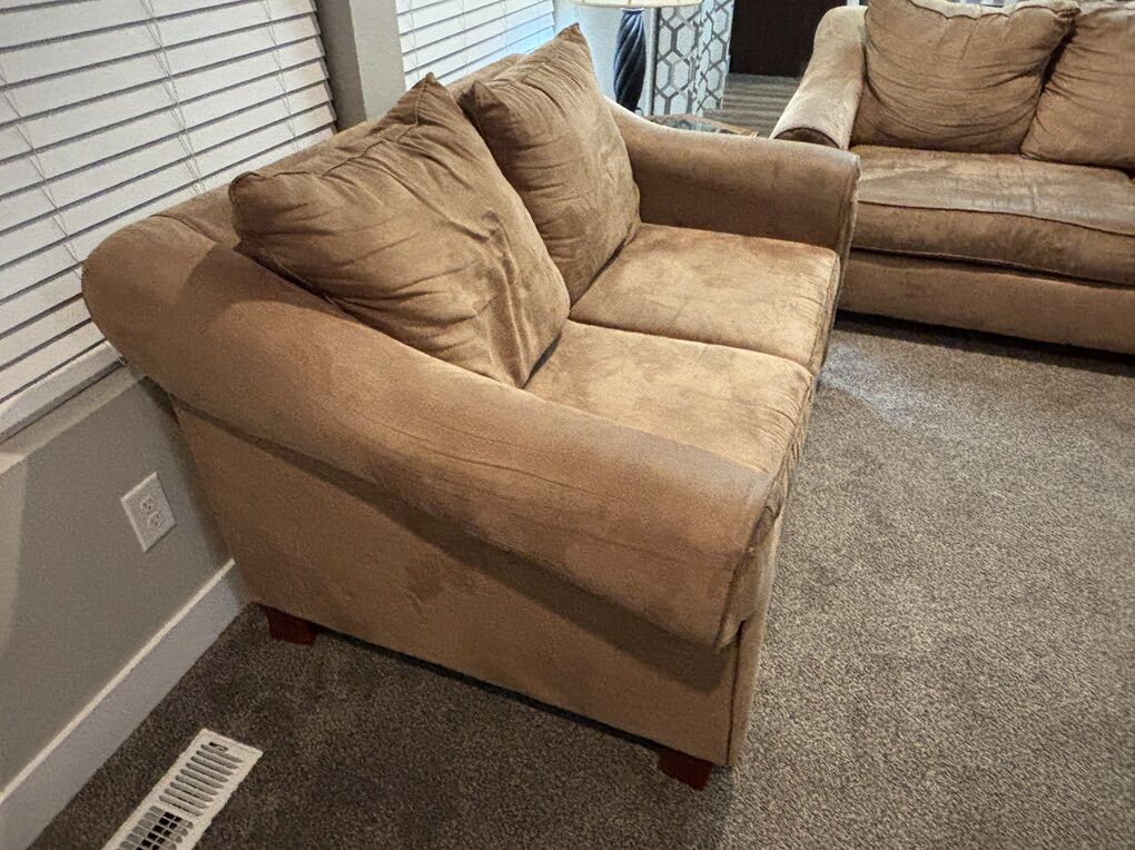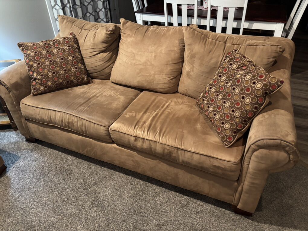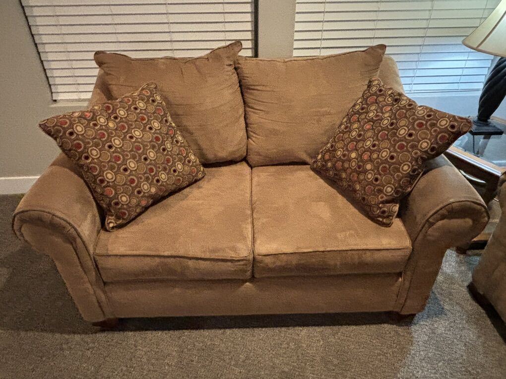 VenmoMedium Light Brown Couch and Loveseat in good used condition. Matching throw pillows make these basic couches a little nicer. Probably 10 years old if I calculate correctly. Good starter couches.
