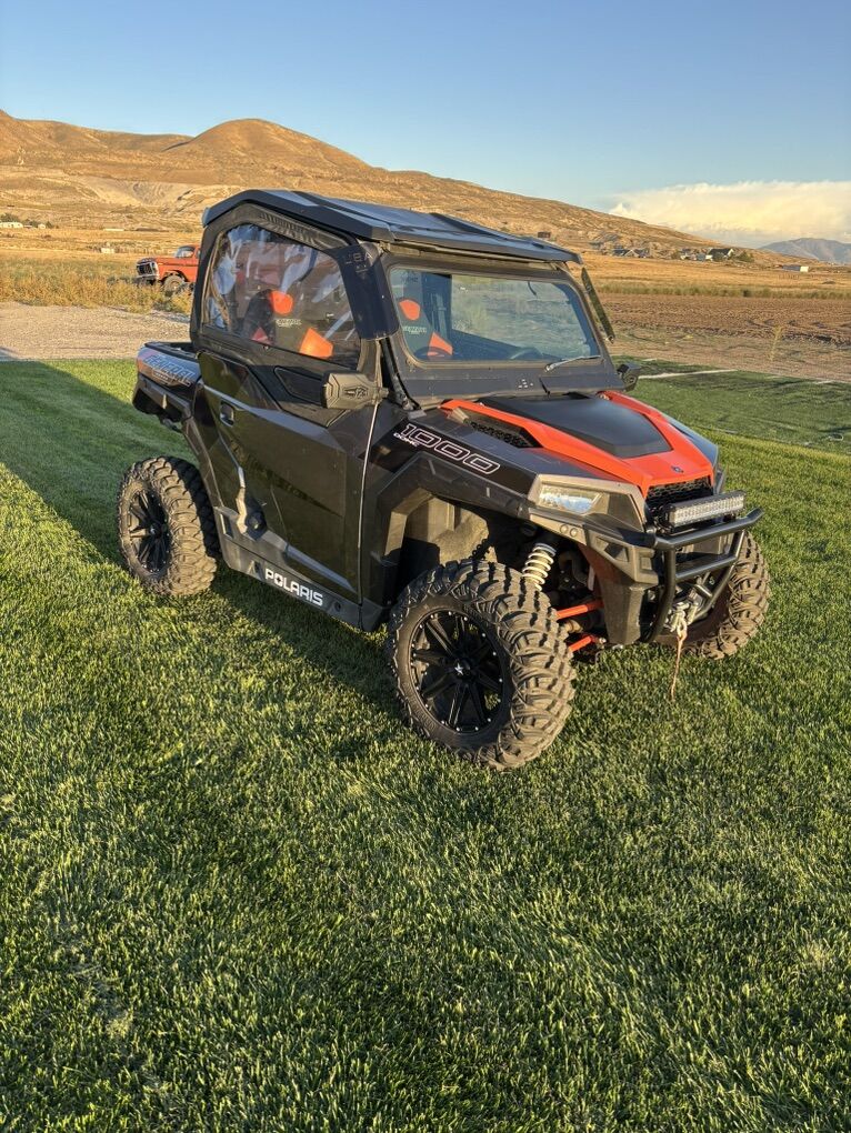 Selling our 2 seat General. It’s been a great machine, we just upgraded to a four seater. Serviced less than 500 miles ago. Has new rims and tires, and a new plow that has only been used once. Factory radio and speakers. Has the soft door/window to cut down the wind and cold. They are installed and removed really quickly. Aftermarket light bar that works really well. Reach out with any questions. No scammers!