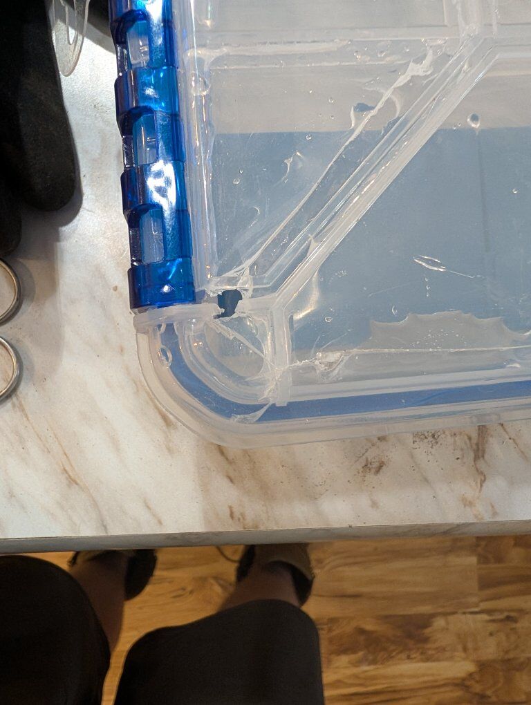 VenmoThe Flambeau Waterproof Ultimate Tuff Tainer sports a watertight seal, 3 tight-sealing latches, and Zerust corrosion protection. The Tuff Tainer is not only waterproof but rustproof, too, and comes with 5 removable dividers that enable both open and divided storage. Molded into Tuff Tainer dividers, Zerust polymer emits a harmless vapor that forms a protective layer around metal surfaces to guard against rust and corrosion. Size: 14"L x 8.9"W x 3"H. Comes with light fishing tackle to get you started. Has a crack in the corner.