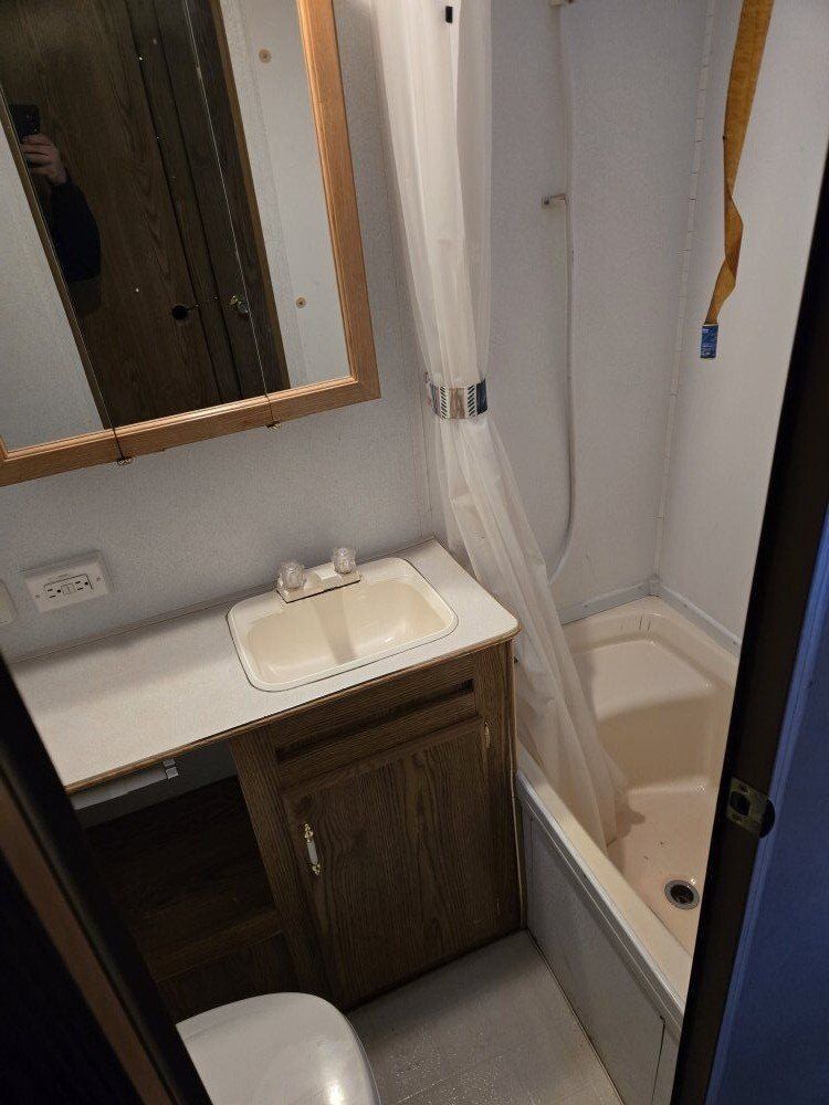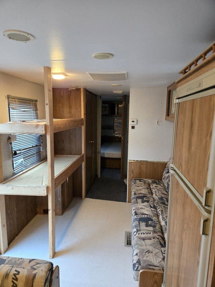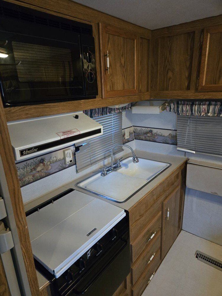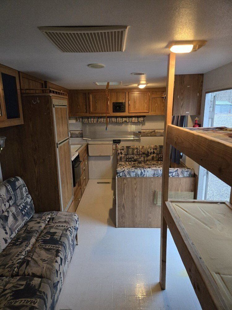 This has been a great trailer. It has a few dents from being in the mountains. Everything works great including hot water heater and fridge. A/C works great. Heater works good, the fan is kinda rattles a little until it warms up. Awning works good and has no tears. Tires are good no weather cracking. It has solar panels to charge the batteries but I believe the batteries are going bad they don't hold a charge as long as they used to. Its currently winterized. Its a 30ft trailer but my half ton truck has pulled it great anywhere I've wanted to go. I believe the GVWR is right under 5k