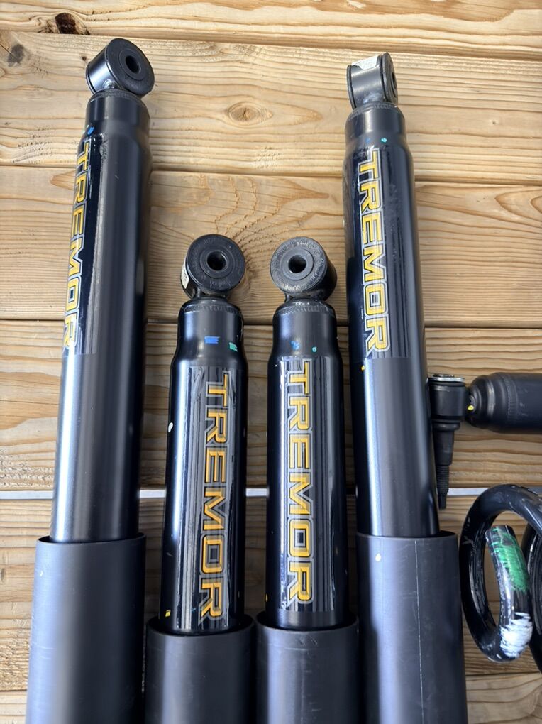 FOR SALE: 2026 Ford F-350 Tremor Suspension & Wheel Take-Offs Up for grabs is a full set of suspension and rolling stock from a 2026 Ford F-350 Tremor. These parts were removed shortly after delivery for a custom build, so they have extremely low delivery miles only (approx 50 miles). This is the perfect upgrade for a standard F-250/F-350 owner looking for that factory Tremor lift, improved off-road dampening, and the aggressive wheel/tire combo. What’s Included: • Wheels & Tires: Factory 18-inch Matte Black Tremor wheels wrapped in 35-inch Goodyear Wrangler Duratracs. • Shocks: Tremor-tuned front and rear performance shocks. • Leaf Springs: Heavy-duty Tremor-spec rear leaf pack. • Suspension Components: Front coil springs and any associated hardware/linkages removed during the swap. Condition & Fitment: • Condition: Like-new/Take-off approx 50 miles on parts, tire & wheel combo. • Fitment: These are designed for the 2023–2026 Super Duty platform. Please verify compatibility with your specific trim and wheelbase before purchasing. See Less