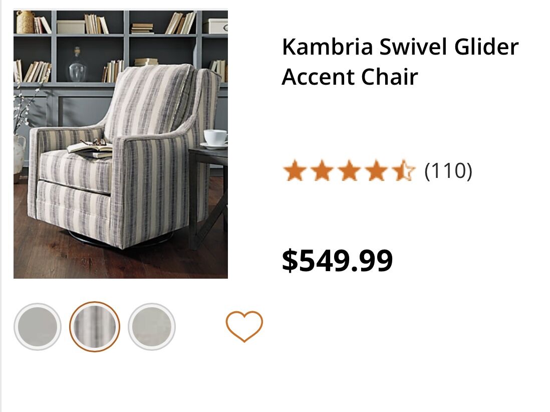 Great swival rocking chairn lightly used. No kids, pets or smokers.