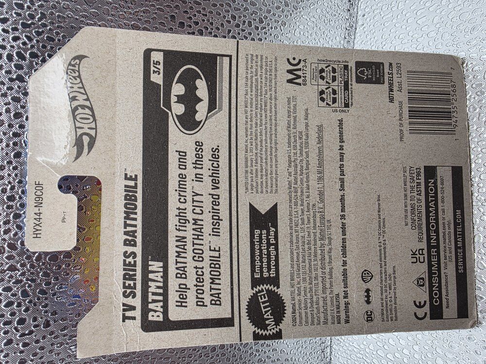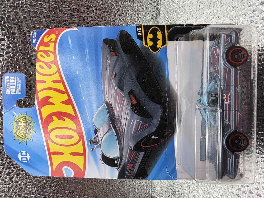 HYX44-N9C0F DC, Batman (60's classic Batmobile from Batman TV Series) Car # 3/5 number 103/250 of Hot Wheels 2025 Mainline (far from mint the card has soft edges, Creases and card imperfections that you can see with the correct angled light, but still in decent condition please see photos)