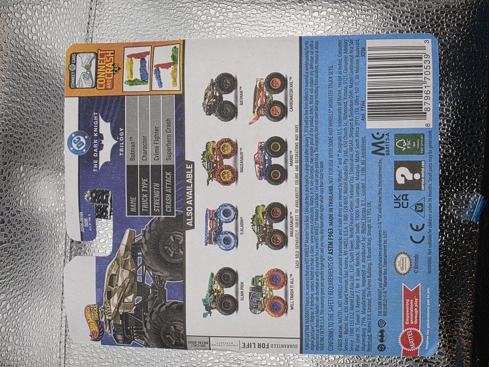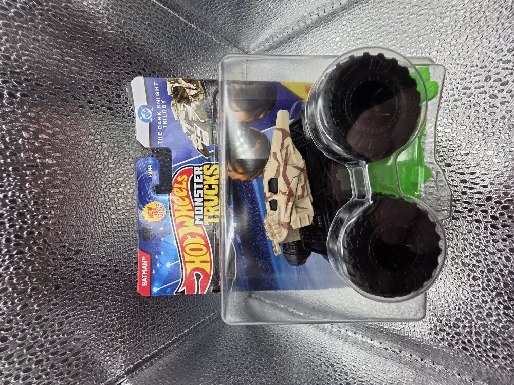 FYJ44 DC, Batman (The Dark Knight Trilogy) 2025 Hot Wheels crush-car included. This is Camo Tumbler from Hot Wheels Monster Trucks 1:64 (has soft edges and card imperfections, but still in good condition please see photos)