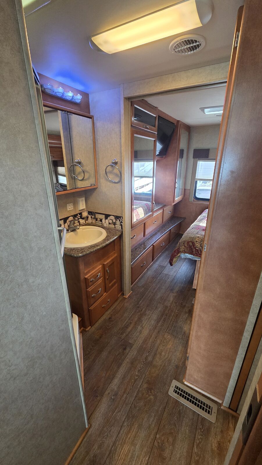 This Newmar Bay Star 3201 delivers dependable Ford gas performance combined with Newmar craftsmanship in a comfortable two-slide layout designed for couples or small families.