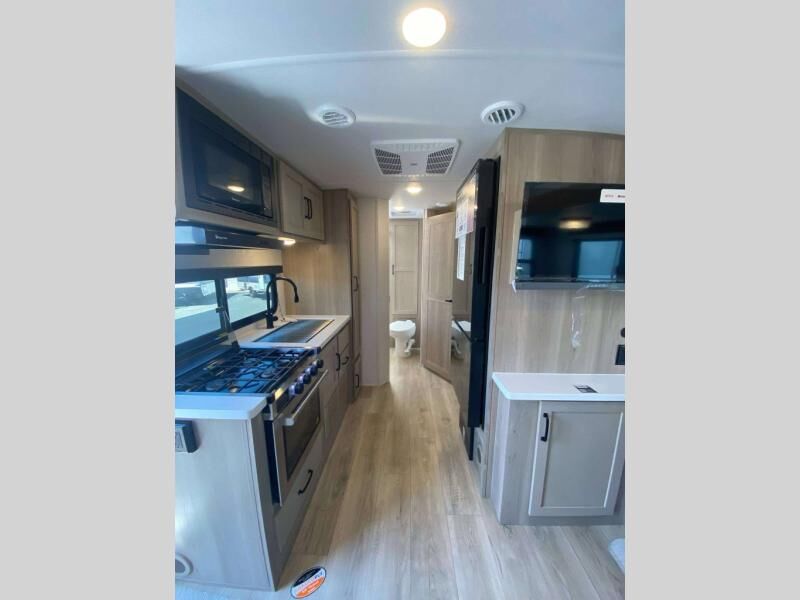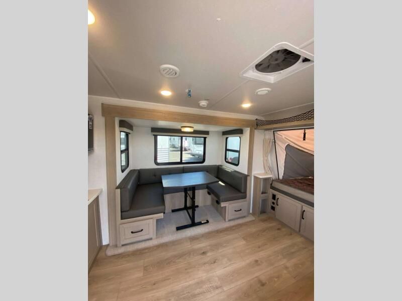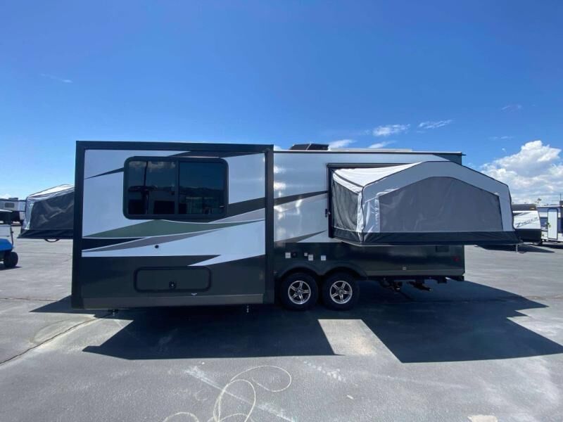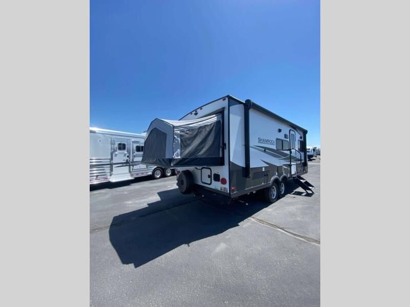 The 2025 Flagstaff Shamrock 233S offers spacious hybrid sleeping capacity, dependable construction, and a thoughtful combination of standard features. With solar power, a full kitchen and bath, and durable lightweight design, this trailer is ideal for families or anyone seeking a roomy yet easy-to-tow travel trailer.
