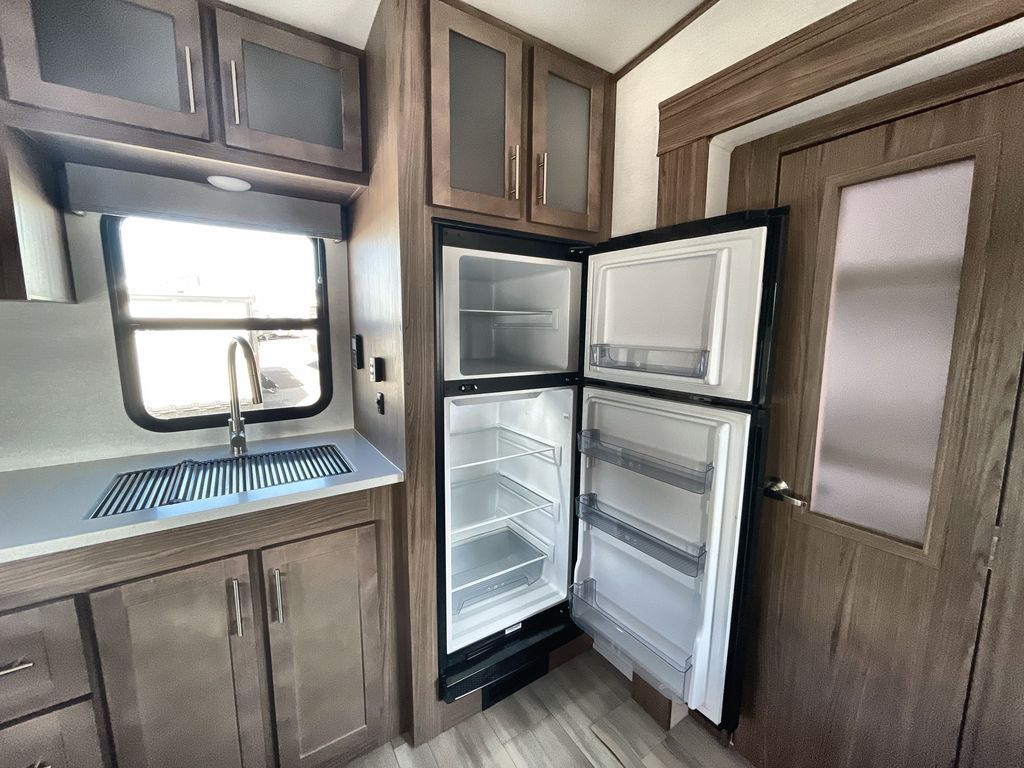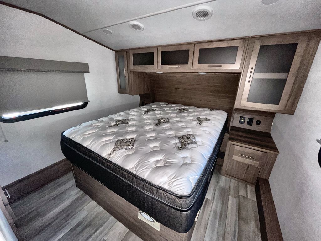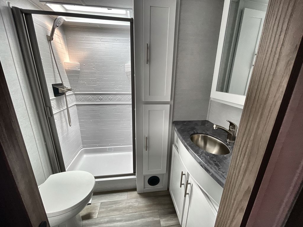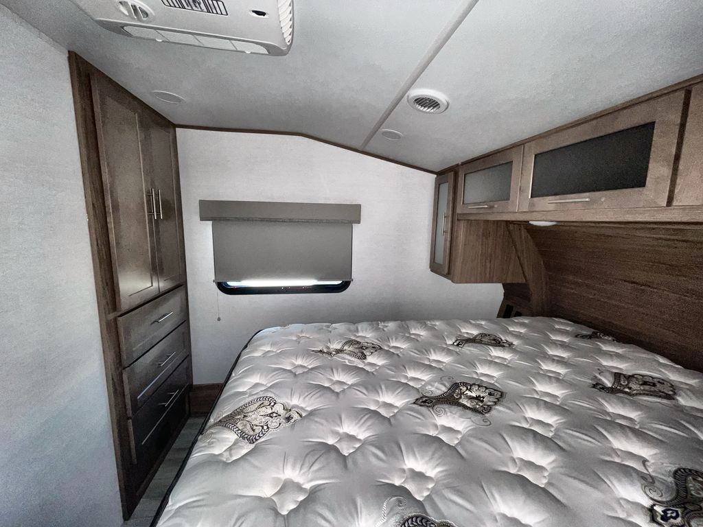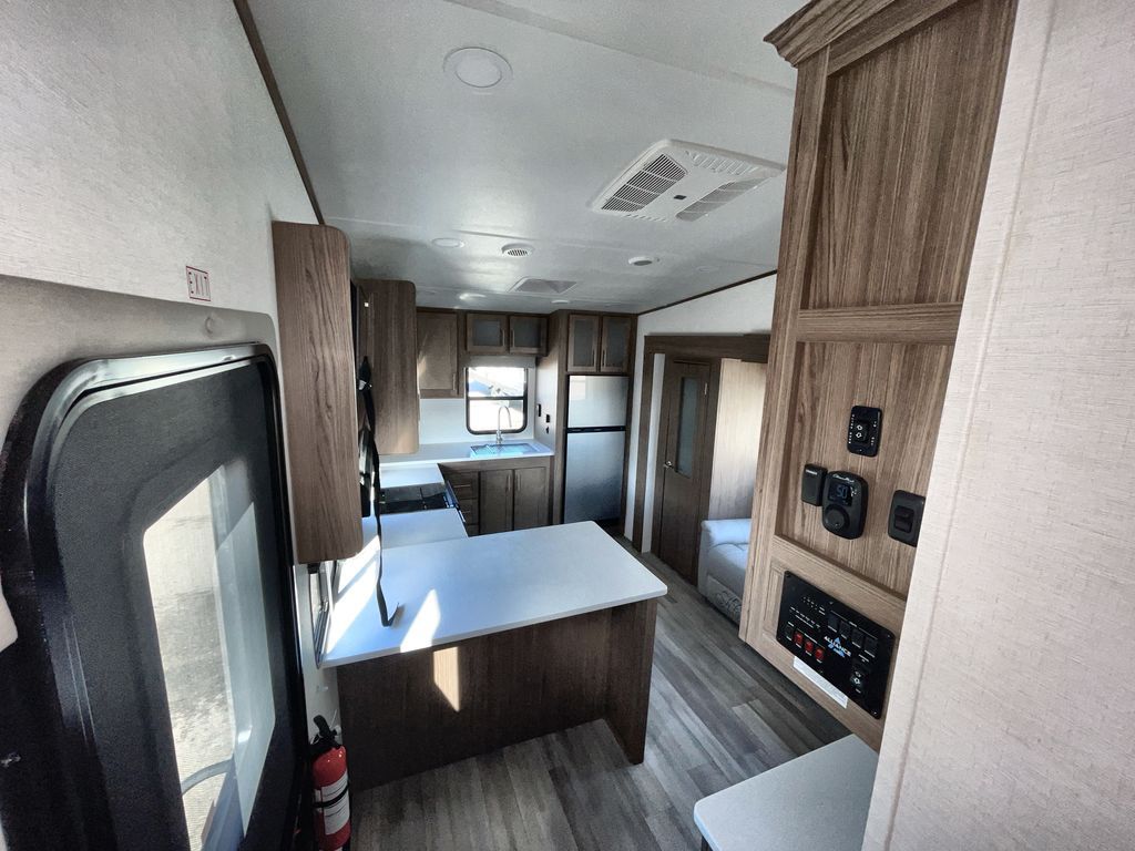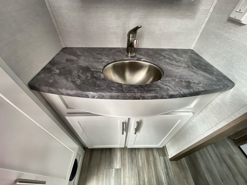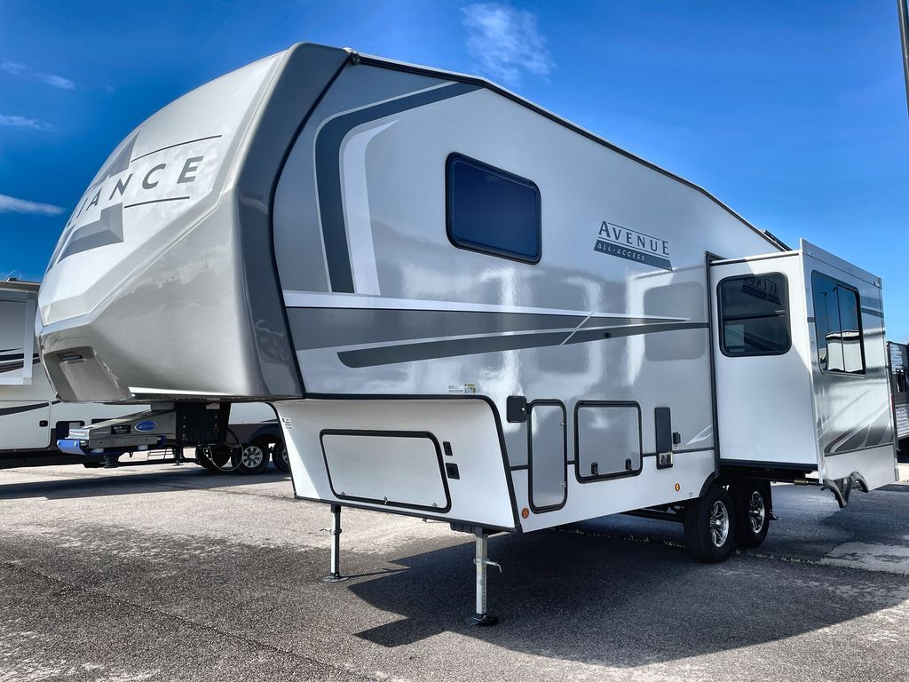 The private front bedroom offers a queen bed, dual nightstands, and a closet to keep your clothes organized. The full bath provides everything you need to freshen up during your travels.The Avenue 24RK is constructed with a 101" wide-body design and a benchmark chassis for extra space. The flush slide-out floors ensure easy movement throughout. Its Azdel composite sidewalls and seamless PVC roof provide long-lasting durability with minimal maintenance. The vinyl flooring throughout creates a clean, allergen-free environment, making it ideal for pet owners.