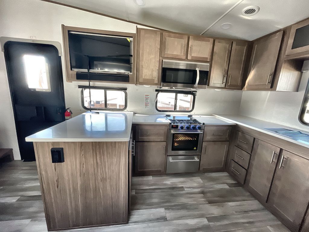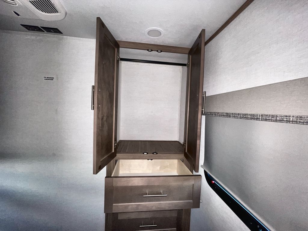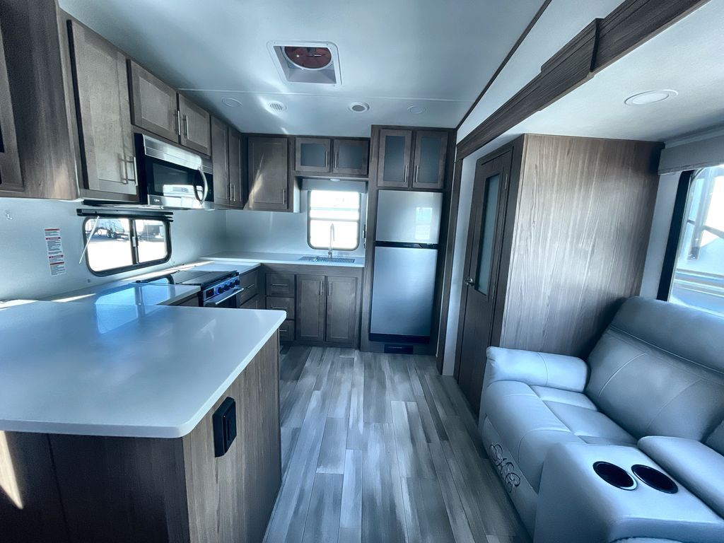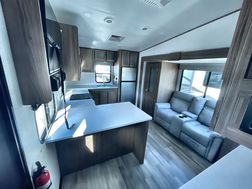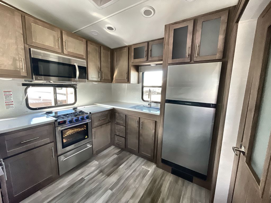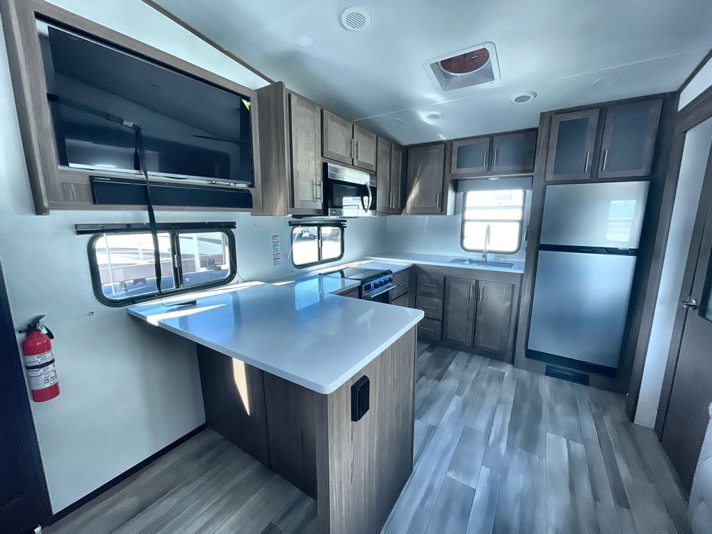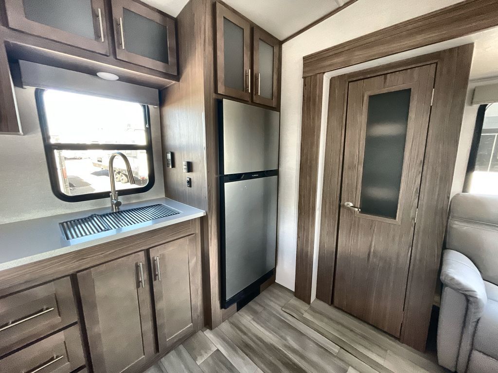 The private front bedroom offers a queen bed, dual nightstands, and a closet to keep your clothes organized. The full bath provides everything you need to freshen up during your travels.The Avenue 24RK is constructed with a 101" wide-body design and a benchmark chassis for extra space. The flush slide-out floors ensure easy movement throughout. Its Azdel composite sidewalls and seamless PVC roof provide long-lasting durability with minimal maintenance. The vinyl flooring throughout creates a clean, allergen-free environment, making it ideal for pet owners.