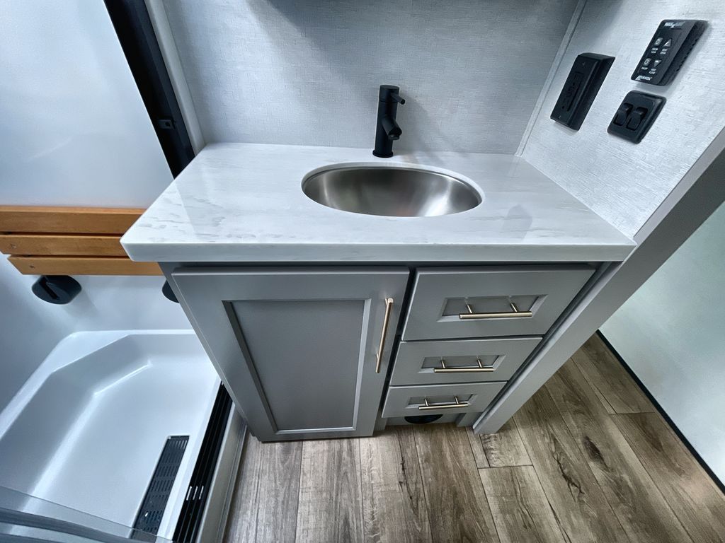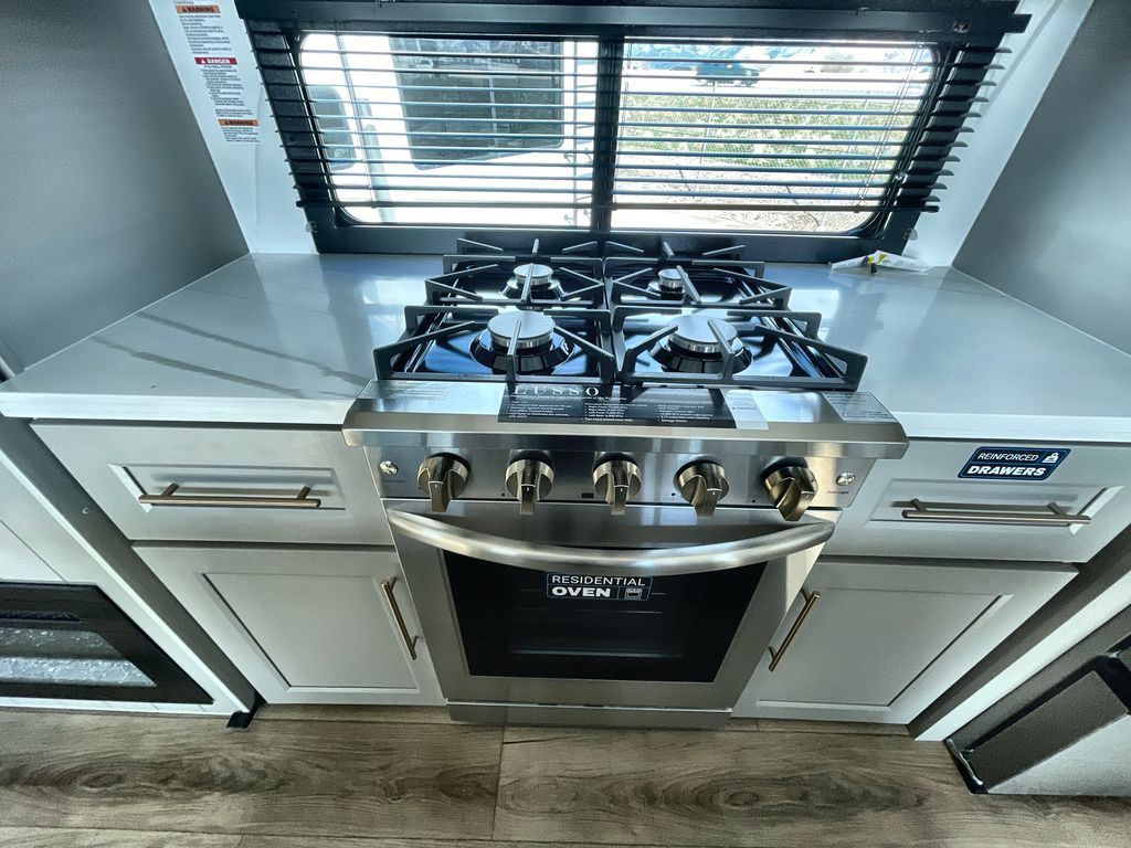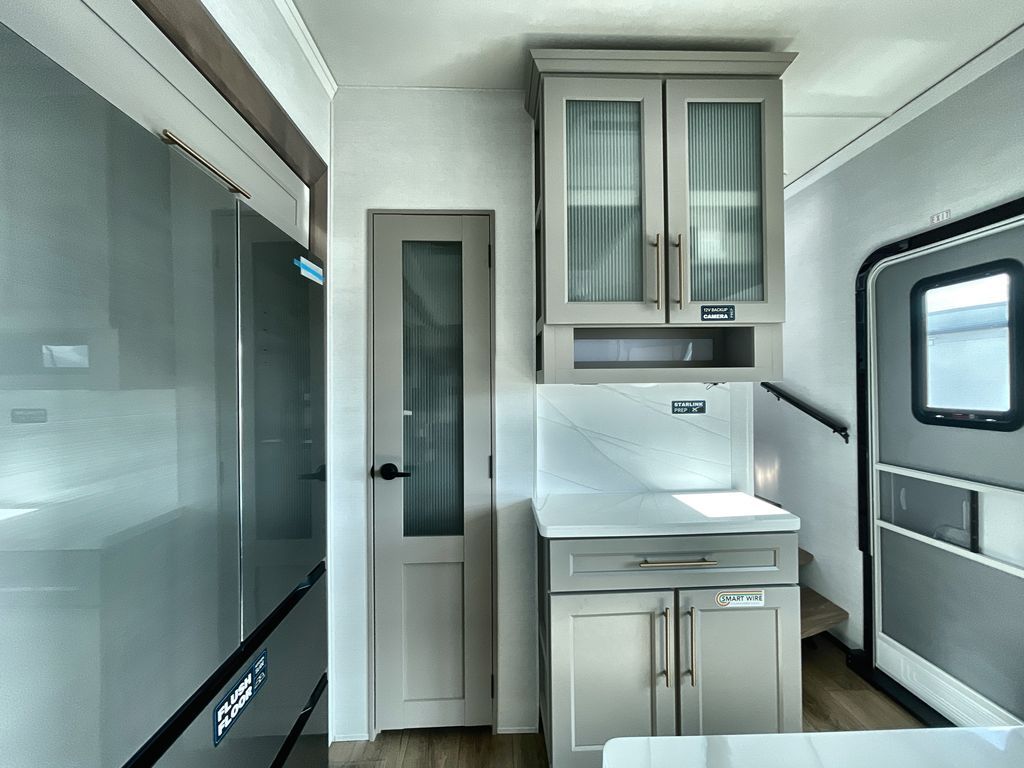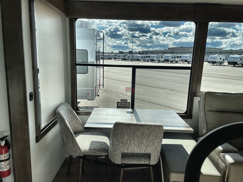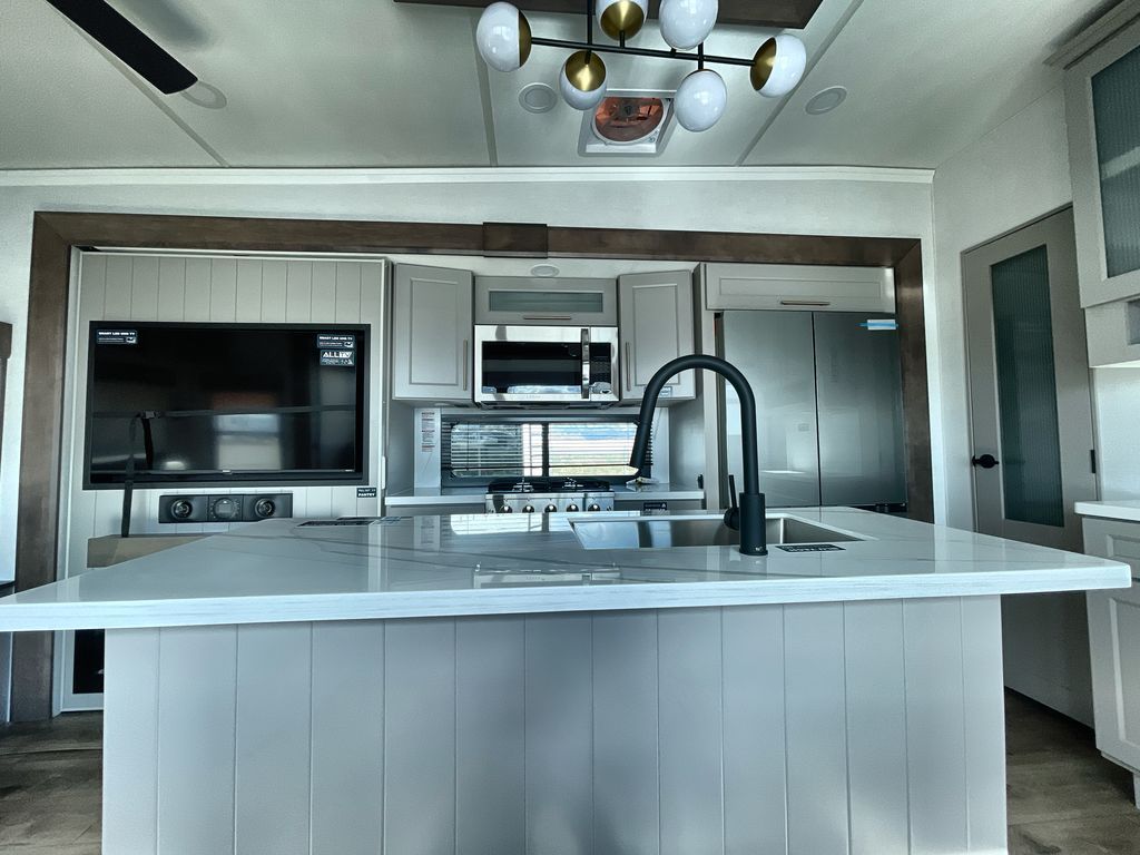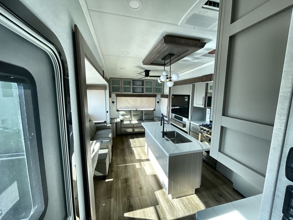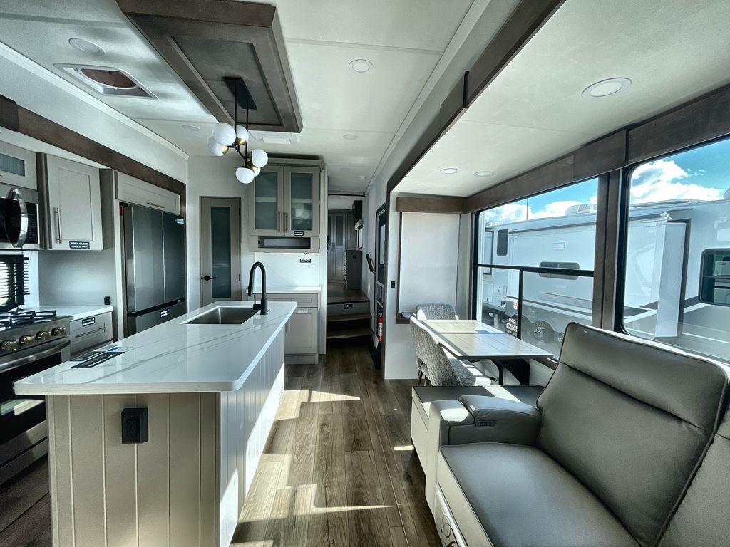 The Paradigm fifth wheels by Alliance RV are functional, high-quality, and luxurious for an unforgettable camping experience. There are three A/C units and a 40K BTU furnace to keep you comfortable year around, and you'll appreciate additional convenient amenities, like the all-in-one enclosed/heated utility center and the color coded and numbered wiring. A Helux Series coil spring pin box comes standard for hassle-free towing, along with Curt 8,000 lb. axles. You'll love the kitchen with its LG solid surface countertops and Lusso range, plus there is LED motion lighting in the pantry and a Maxx fan with a rain sensor to keep everything fresh when making dinner. Each model also includes an HD Smart TV in the living room and bedroom. And of course there are a variety of options you can choose from to further customize your fifth wheel; dual pane windows, Super Solar Plus, slide out awning toppers, and generator prep or a generator to name a few!
