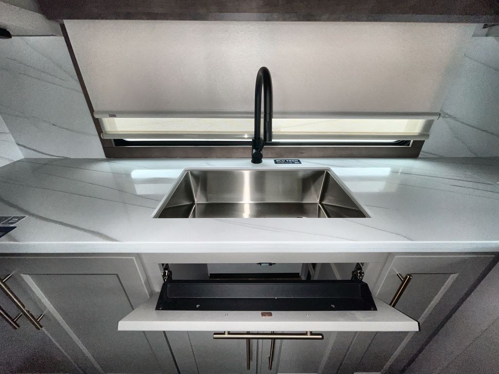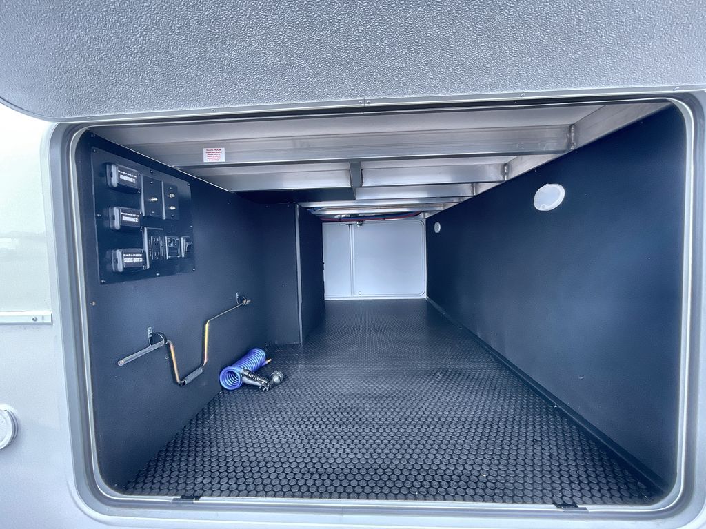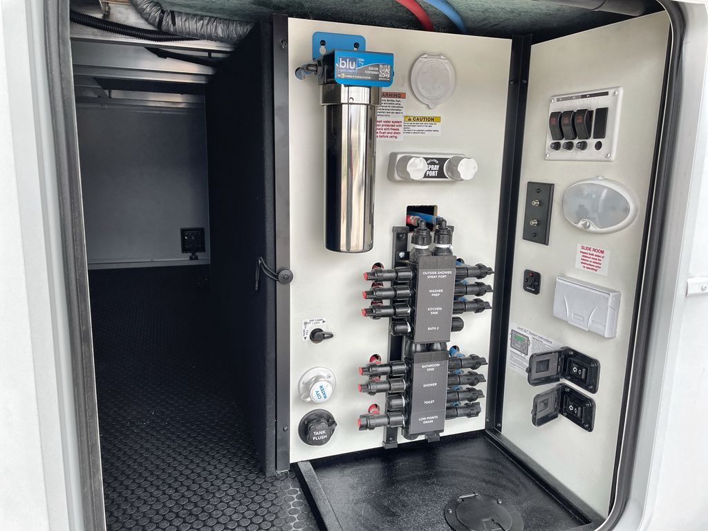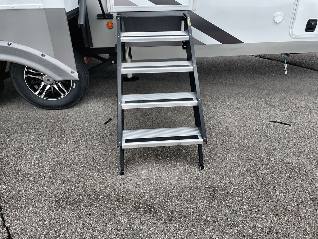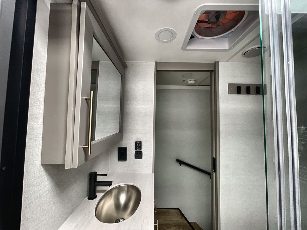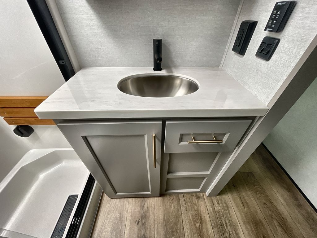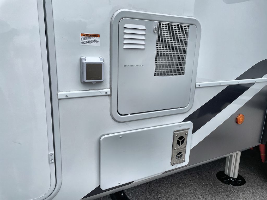 Escape the ordinary and experience the ultimate in luxury travel with this stunning fifth wheel! The rear kitchen is the heart of this fifth wheel, featuring a spacious pantry, 12V refrigerator, microwave, and overhead cabinets. Prepare delicious meals with ease and enjoy the convenience of a fully-equipped kitchen. Unwind in the spacious living area, featuring a plush trifold sofa, L-shape sofa, and a dual recliner love seat. Gather around the turntable dinette or relax in front of the stunning 65” TV. The full bathroom provides a serene space for personal care, while the front bedroom is a peaceful retreat with a comfortable queen bed and a flip-top dresser. Enjoy your favorite shows on the smart TV, perfect for relaxing after a day of adventure.