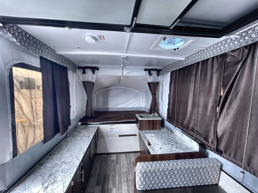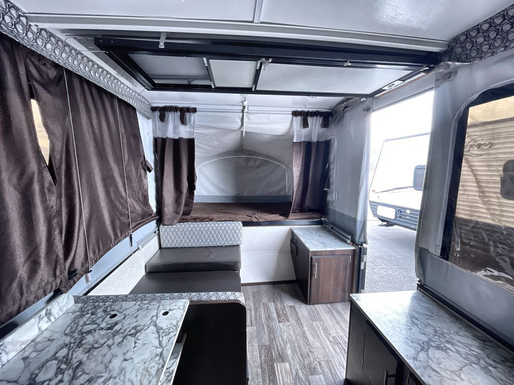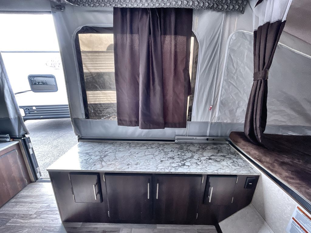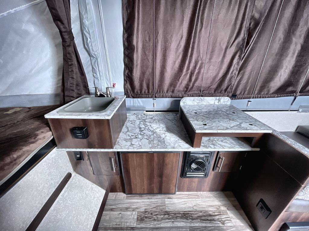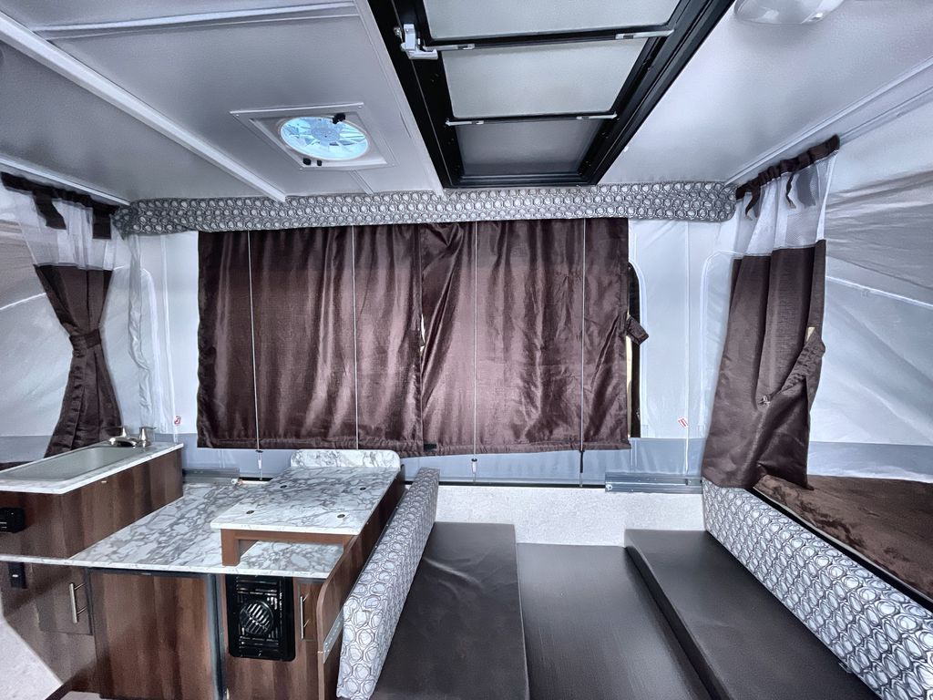 This Jay Sport camping trailer is the perfect addition to your next great outdoor adventure. With its two 1,050 LB-capacity tent end beds and booth dinette, this trailer is able to sleep five people comfortably each time you are on the road. For those nights when dinner needs a little extra room to breath, you can take your meal preparations outside with the carry-out stove, and the residential cabinetry makes storing all of those pots and pans afterwards an easy task.
