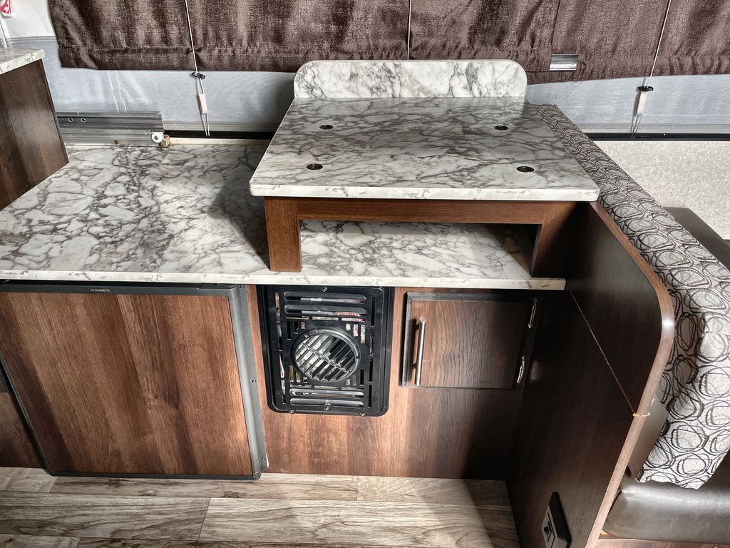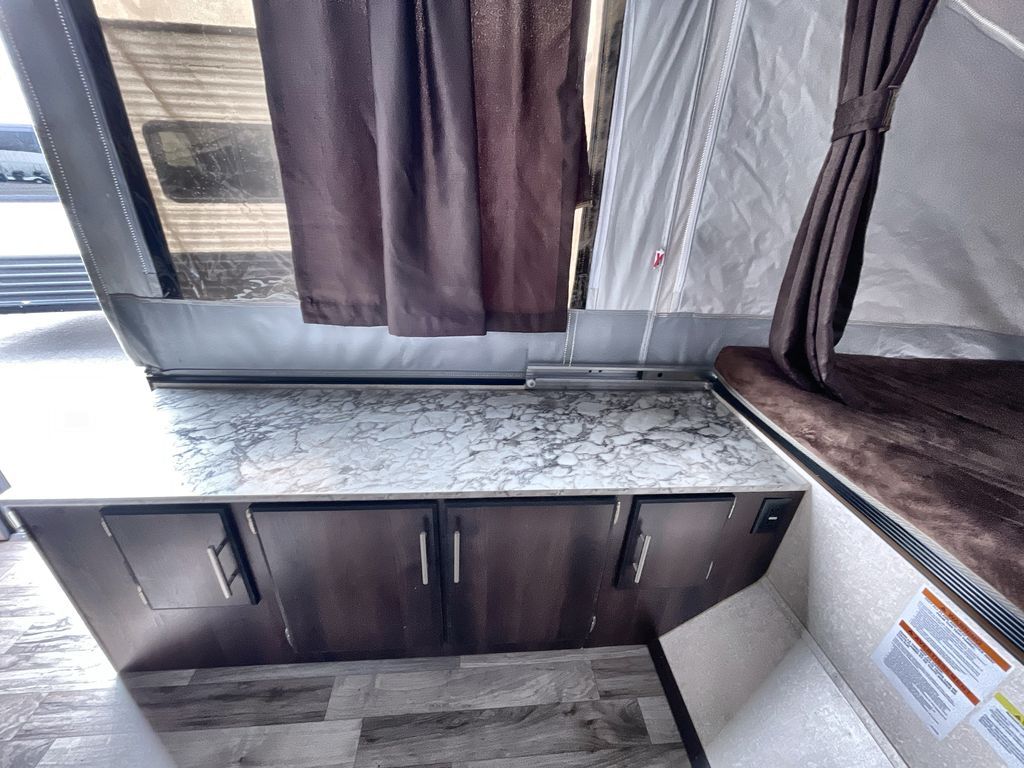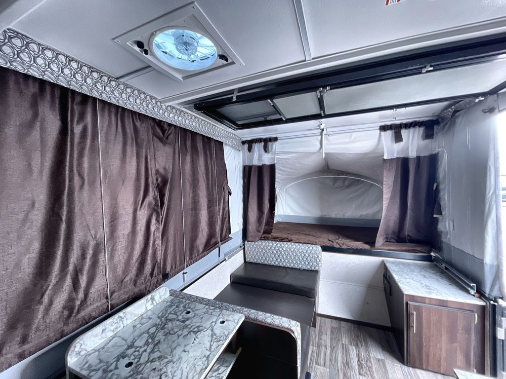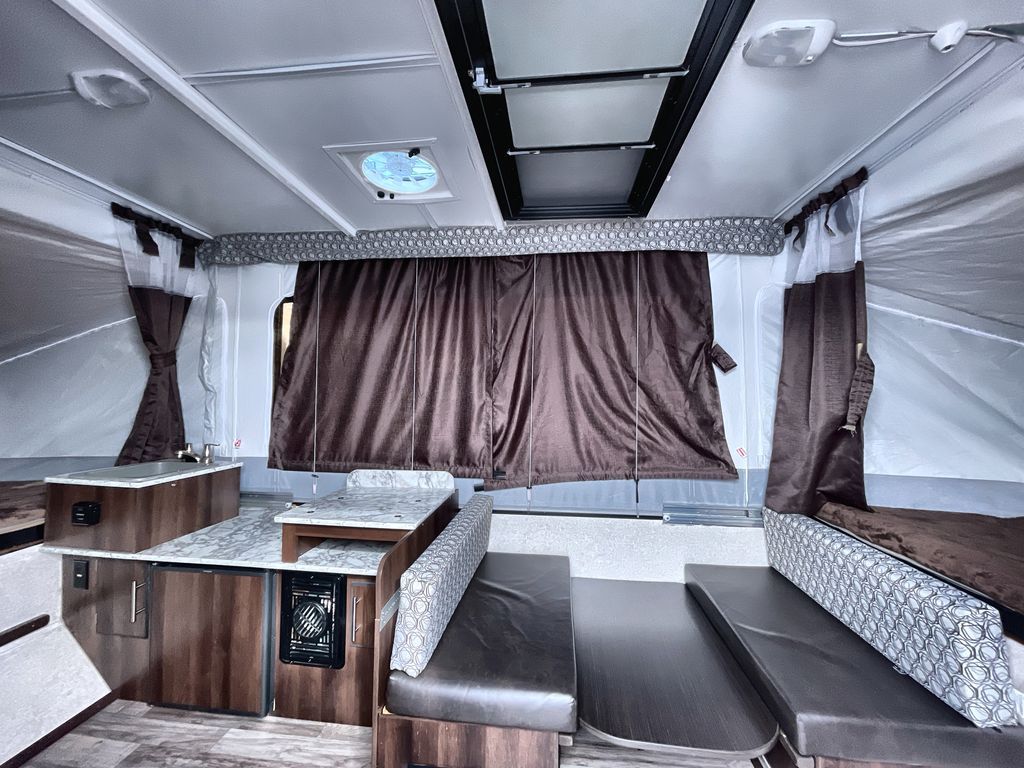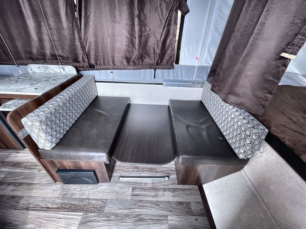 This Jay Sport camping trailer is the perfect addition to your next great outdoor adventure. With its two 1,050 LB-capacity tent end beds and booth dinette, this trailer is able to sleep five people comfortably each time you are on the road. For those nights when dinner needs a little extra room to breath, you can take your meal preparations outside with the carry-out stove, and the residential cabinetry makes storing all of those pots and pans afterwards an easy task.