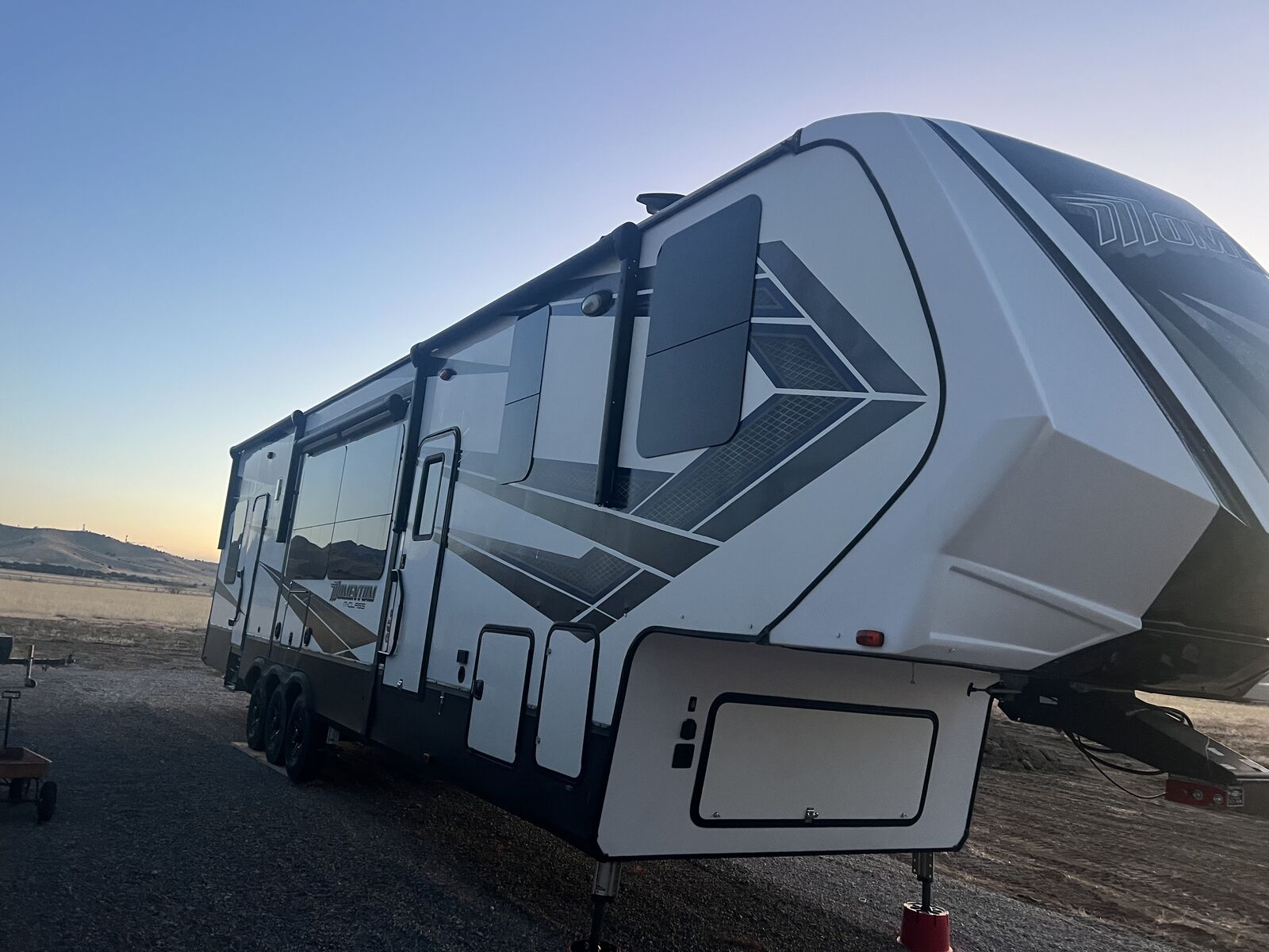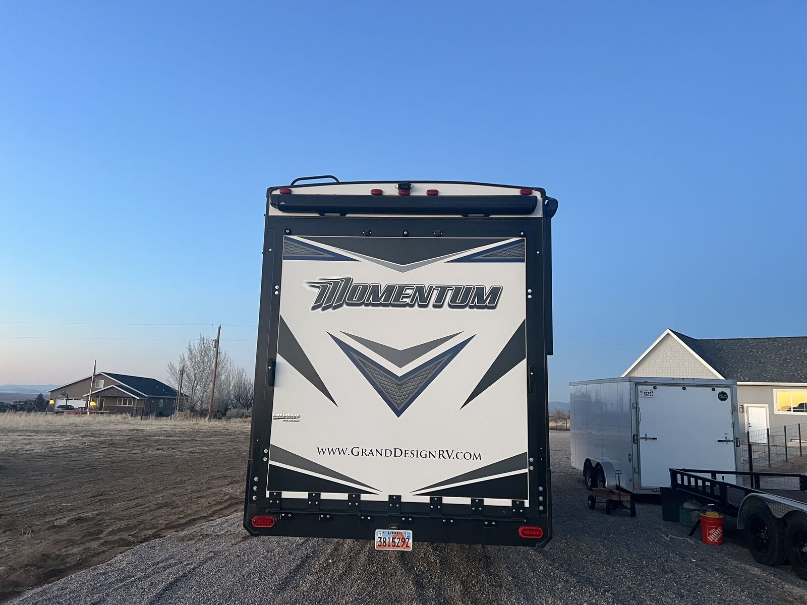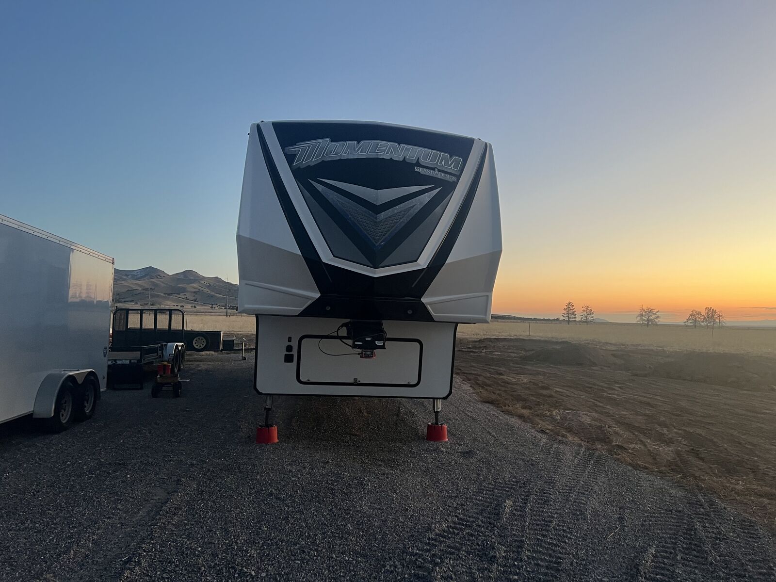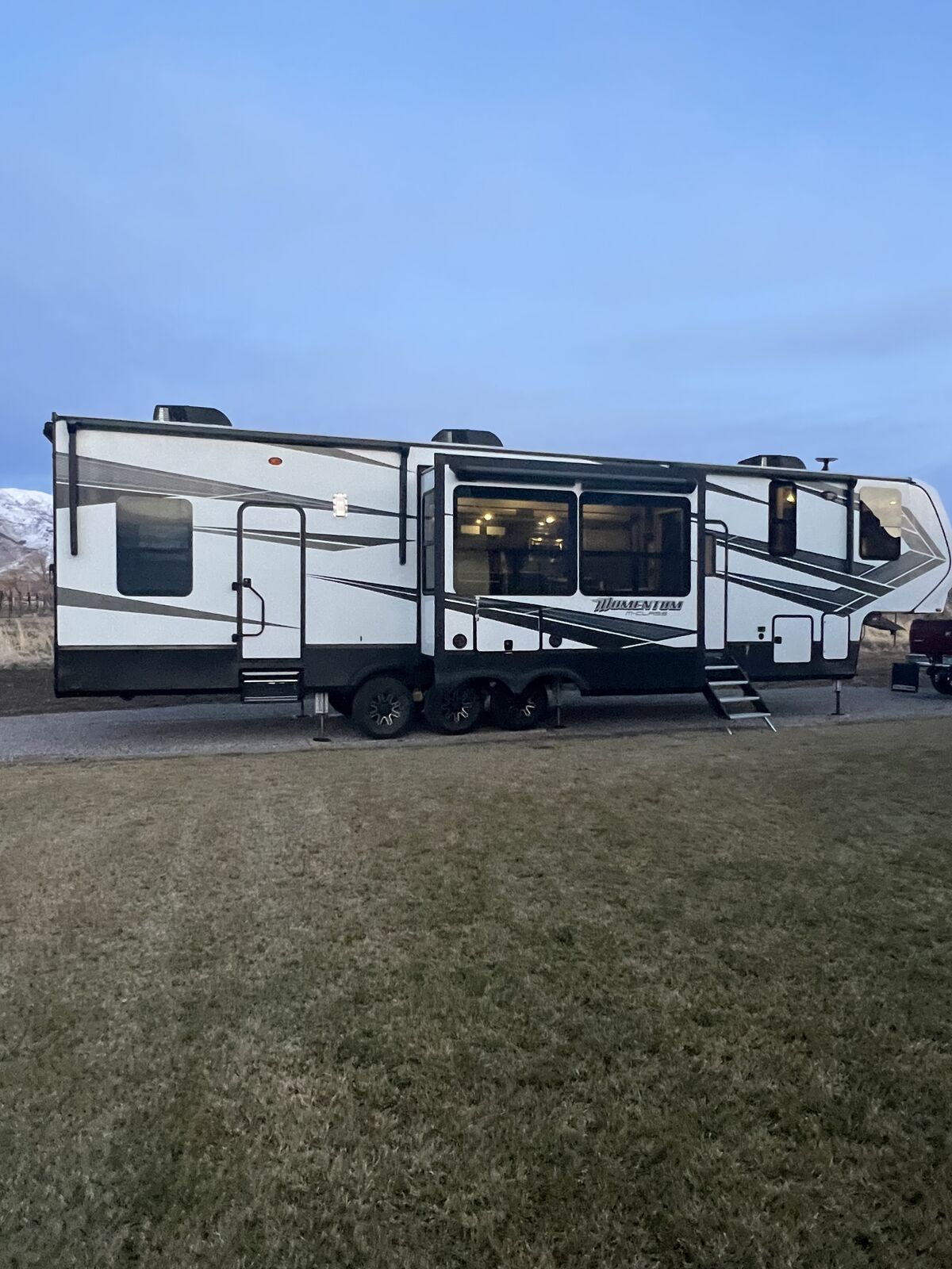 We have absolutely loved this trailer, the only struggle I've had with it is its big and heavy! But what comes with that is its very well built. it has the auto hydraulic leveling system and also the three slides are hydraulic as well which ive really liked and haven't had any problems with. The separate garage in the back does hold my 2017 4 seat turbo rzr but you have to remove the 4 seaso doors on the back doesn't take long at all. the back drop down door turns into a patio. I will try and set the trailer all up so I can up load inside pictures and patio pics with the 4 season doors this weekend. The back garage does have a half bath also. thanks for looking if you have questions I received text or call thank you!