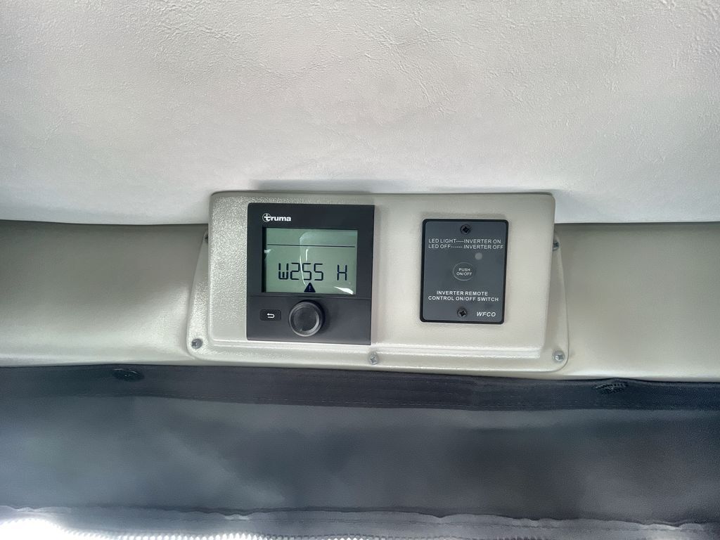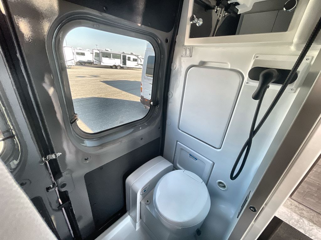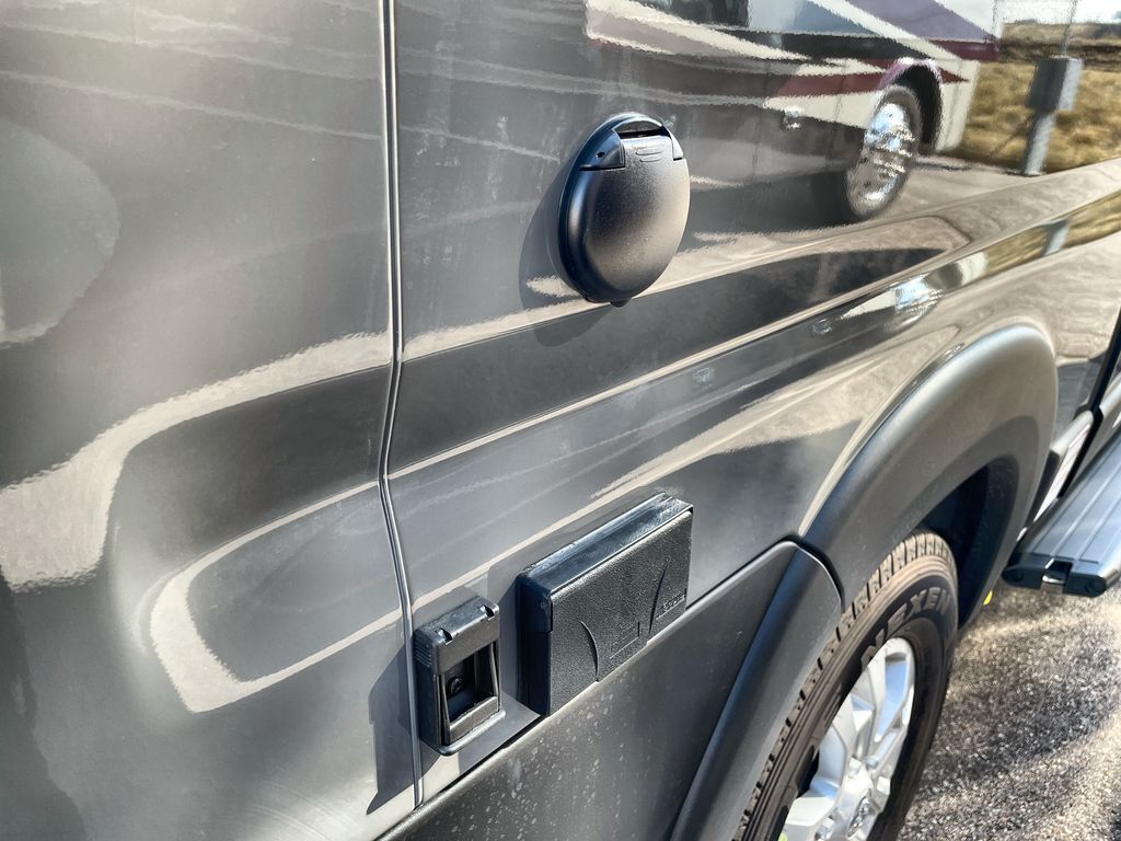 This coach is the perfect home on wheels for all your adventures. You will have everything you need, including a wet bath with a cassette toilet and pocket doors to save space. Once you have prepared breakfast on the two-burner gas cooktop, you can dine on the sofa with a removable table. This area can then be your sleeping space at night since the sofa converts into a 72" x 47" pull-out bed. Whether you're enjoying the fresh air let in by the large opening side windows, or you're sipping on a cold drink under the electric awning, you will love everything about this coach!