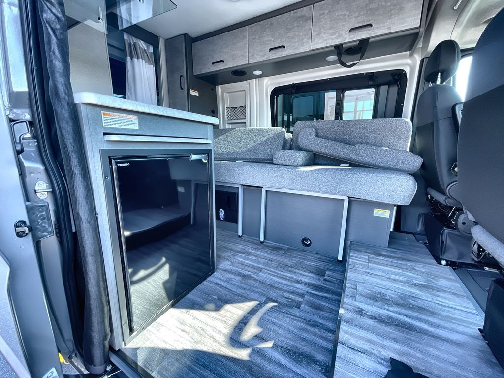 This coach is the perfect home on wheels for all your adventures. You will have everything you need, including a wet bath with a cassette toilet and pocket doors to save space. Once you have prepared breakfast on the two-burner gas cooktop, you can dine on the sofa with a removable table. This area can then be your sleeping space at night since the sofa converts into a 72" x 47" pull-out bed. Whether you're enjoying the fresh air let in by the large opening side windows, or you're sipping on a cold drink under the electric awning, you will love everything about this coach!