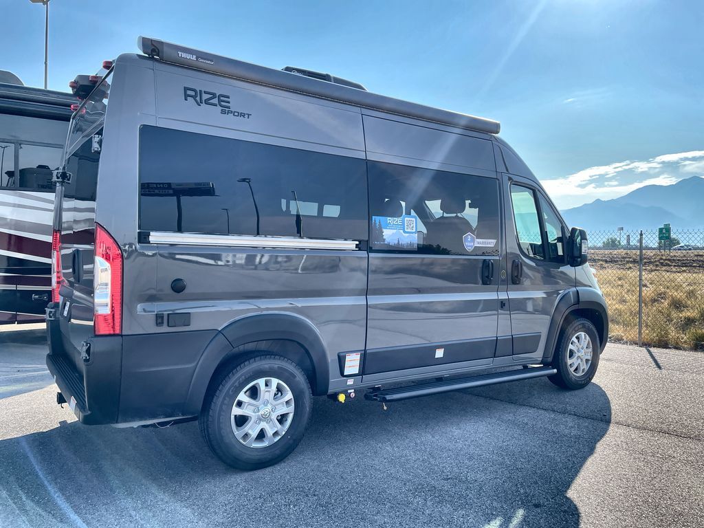 The Rize Class B gas motorhome by Thor Motor Coach allows you to experience the camping lifestyle in a compact RV packed with convenient features. There is a 3.6L Pentastar V6 engine and 276 HP to power your excursions, and the outdoor enthusiast will love the exterior sprayer. Each model includes residential vinyl flooring, Welformed interior wall panels, Euro-style upper cabinet doors, and cassette shades. You'll find solid surface countertops in the kitchen and a glass protective cover and task lighting above the cooktop to easily cook meals each day. The keyless entry system adds to the convenience found throughout these models, plus there is an exterior LP connection if you want to hook up your own grill!