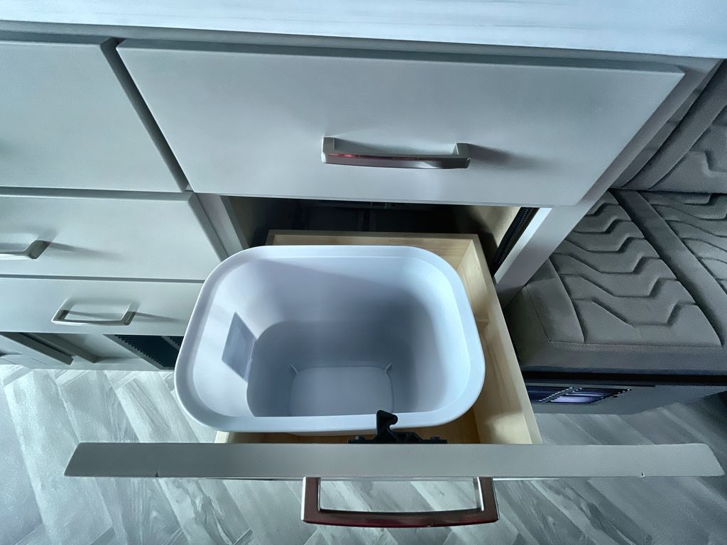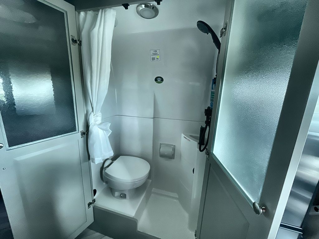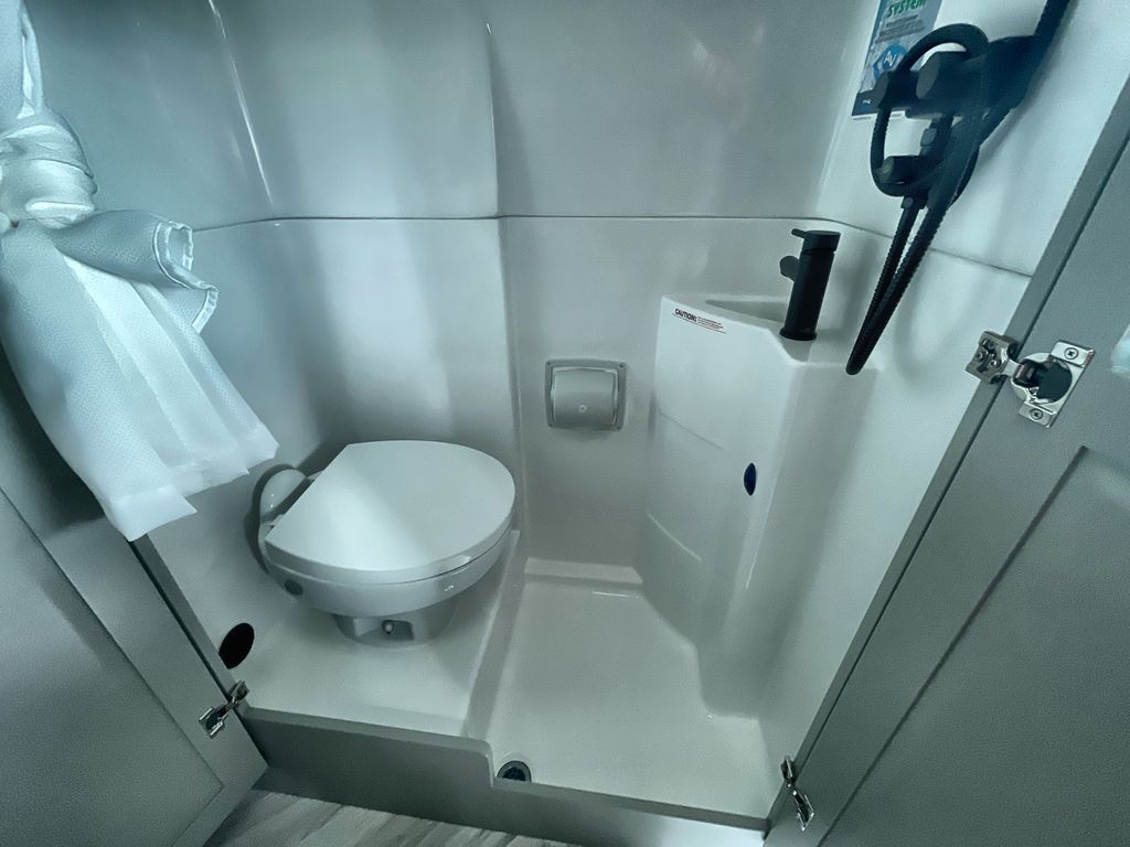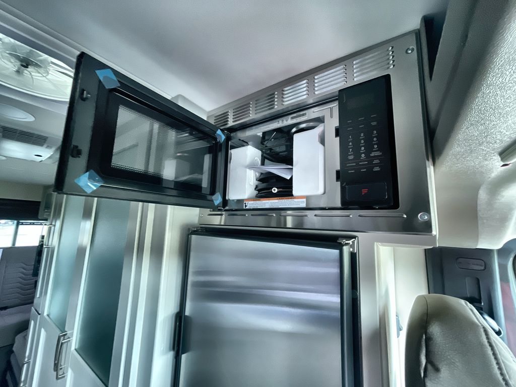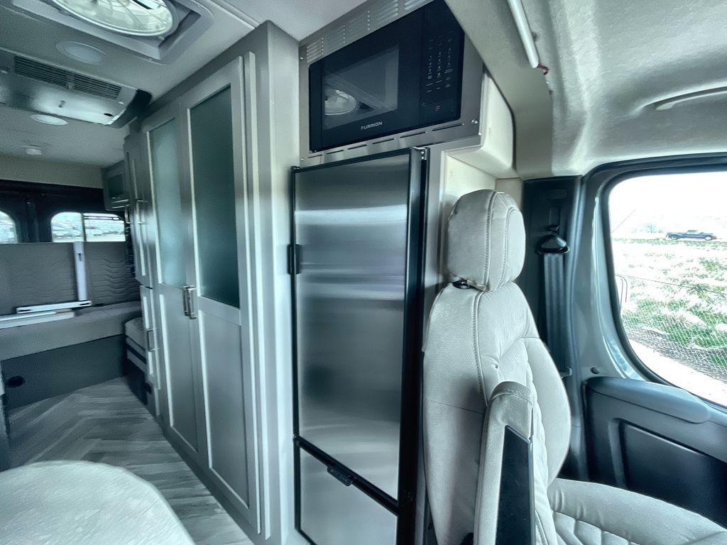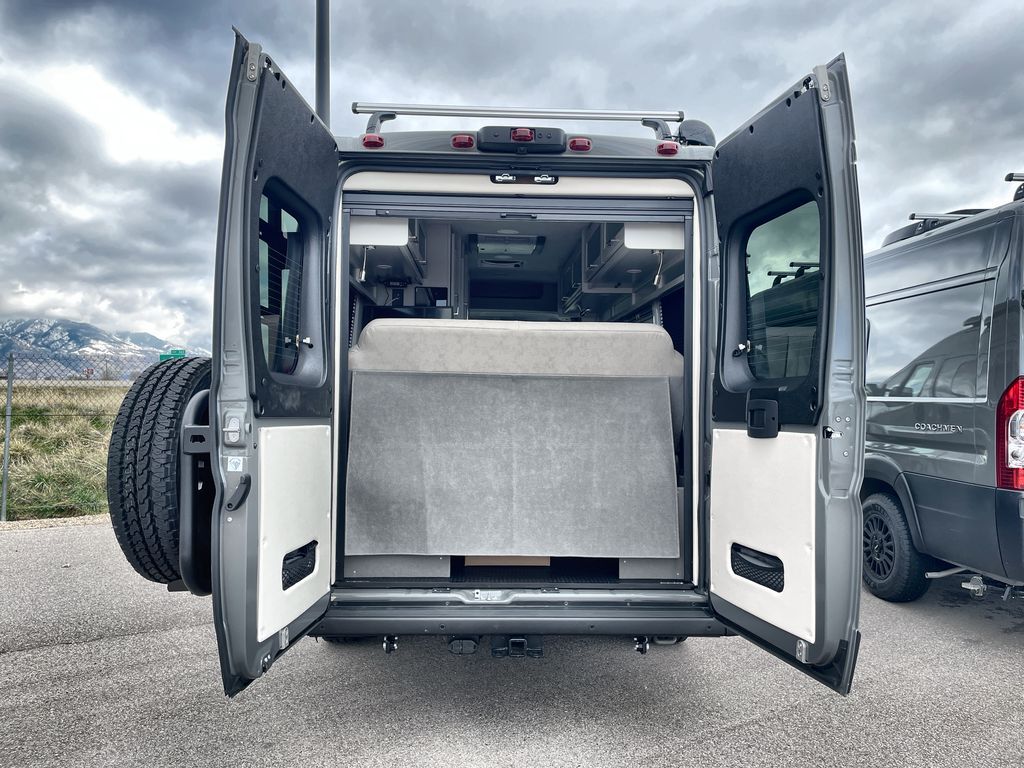 Grab your honey and head to your favorite camping spot in this cozy camper van. Once you park for the day, you can swivel the captain's seats around and enjoy coffee at the swivel table. Lunch can be made on the induction cooktop, and the cold ingredients can go back in the 7.3 cu. ft. refrigerator. The convenient wet bath allows you to freshen up after a hike, and the rear lay-flat power sofa will provide comfortable sleeping space when you're ready to turn in for the night. There are also two jump seats and a swivel table if you want to say up and play a game of cards!