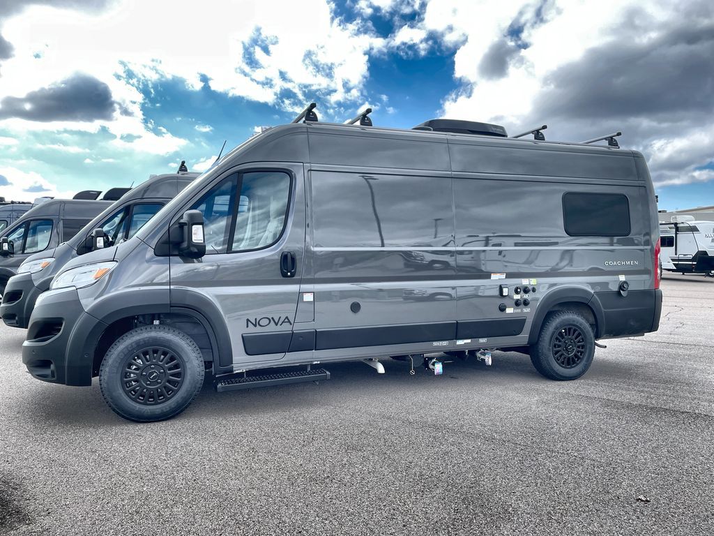 Each Nova Class B gas motorhome by Coachmen features Sumo Spring front and rear suspension for a smooth ride. Each unit is built on a Ram ProMaster 3500 chassis, and is powered by a 3.6L V6, 24 valve engine with 280 HP. You will appreciate the innovative Firefly multiplex system, the Sure Level tank sensors, and the 3 Group 31, 115AH AGM batteries for added power, as well as a new 24" LED Smart TV to help keep you entertained on long trips. Inside, you'll find solid hardwood cabinetry, a fiberglass shower verses the competitors ABS shower, a remote control MaxxAir fan with a rain sensor, and many more comforts to make you feel right at home. There is also a Truma Aventa 13,500 BTU A/C with three speeds, a dehumidifier, and night mode to ensure your comfort throughout each trip! An optional Li Lithium Battery System can be added which features a 640 amp-hour lithium battery, a Bluetooth battery management system, a Xantrex XC Pro 3,000W inverter/charger, and more features for off-grid capability!