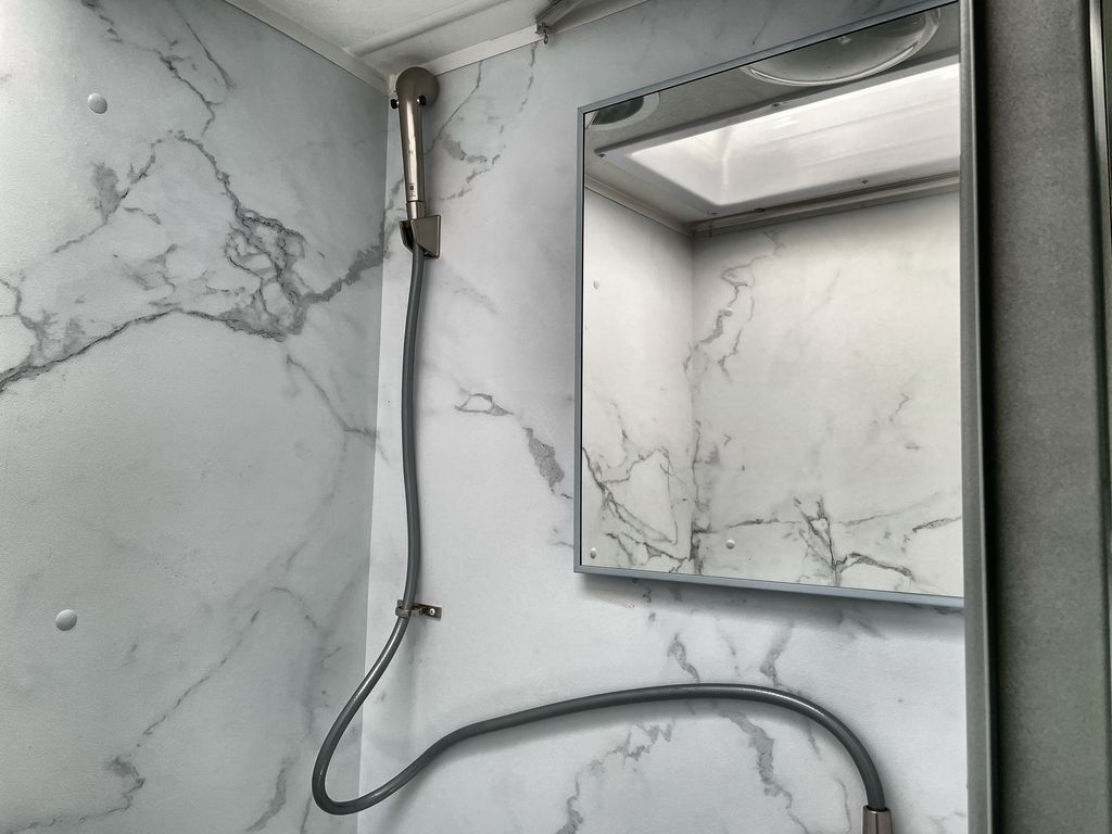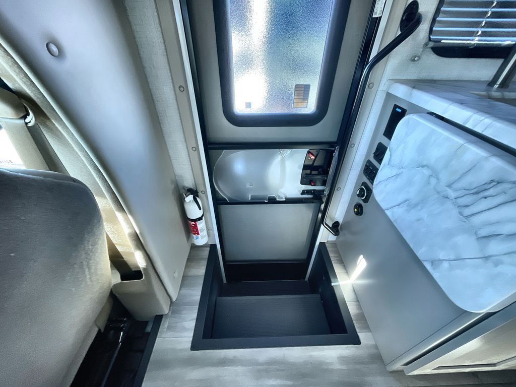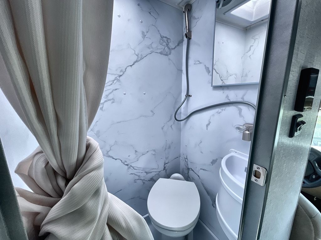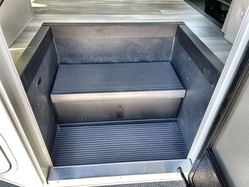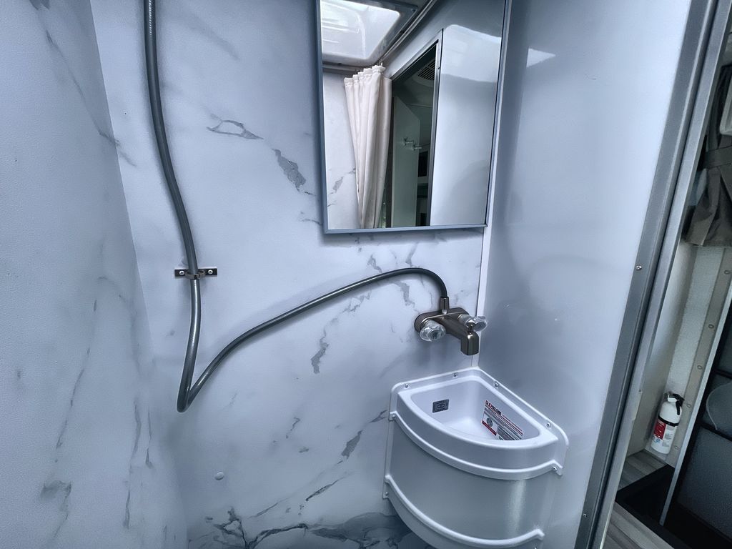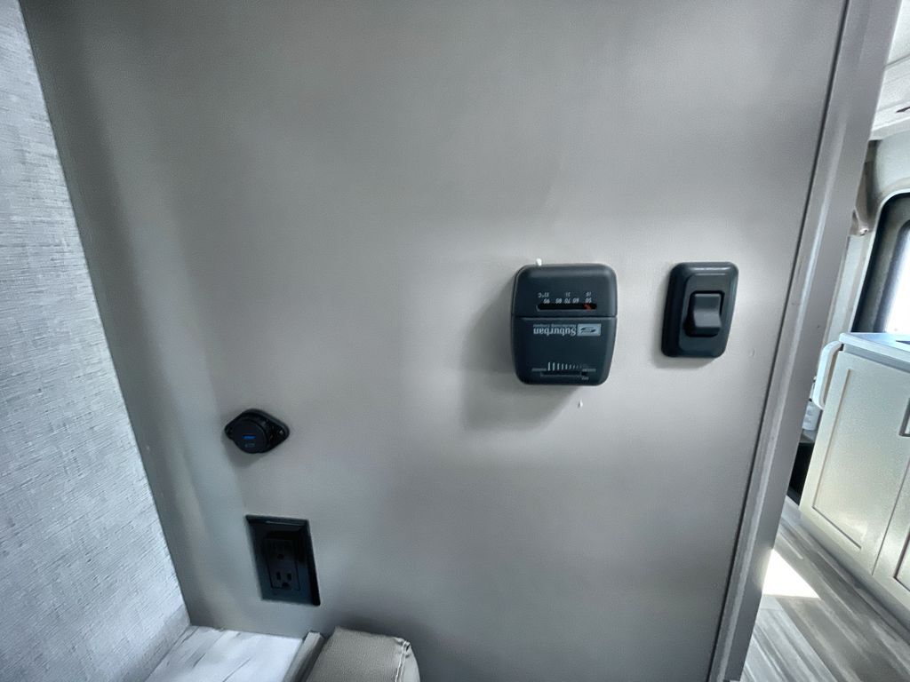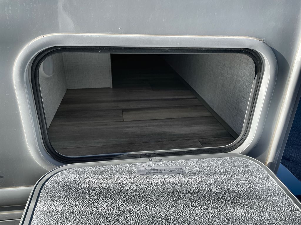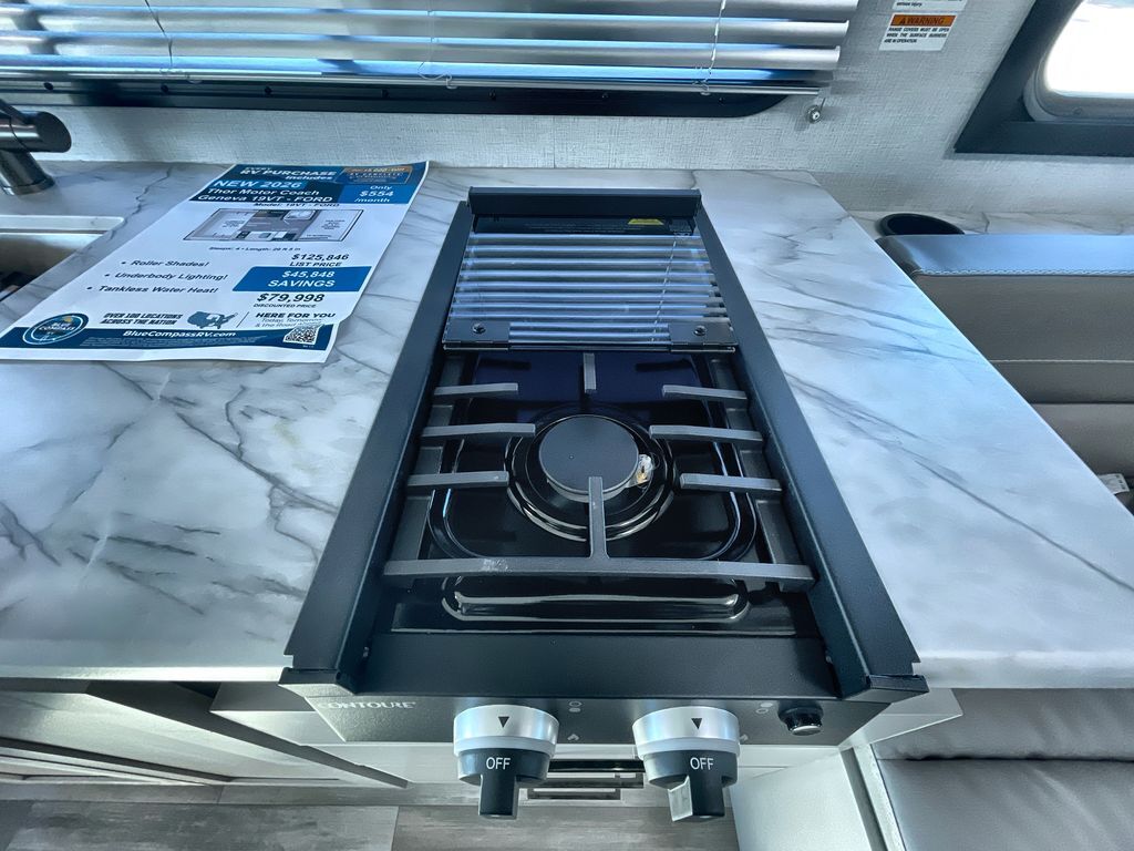 This cozy coach is perfect for three to four happy campers! Once you stop for the day, you can freshen up in the wet bath that includes a foot flush toilet, power vent, and shower skylight for more natural lighting. The two burner cooktop and convection microwave with an air fryer will let you make meals each day, and the 12V refrigerator will keep your food fresh. You'll also appreciate the flip-up countertop for more space to prep meals. There is a U-shaped dinette with a removable table that will convert to a 54" x 77" bed, while the little ones take the cab-over bunk with a 52" x 91" sleeping area.