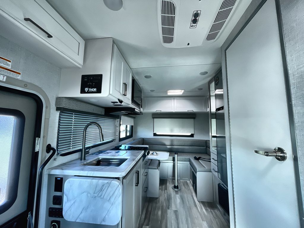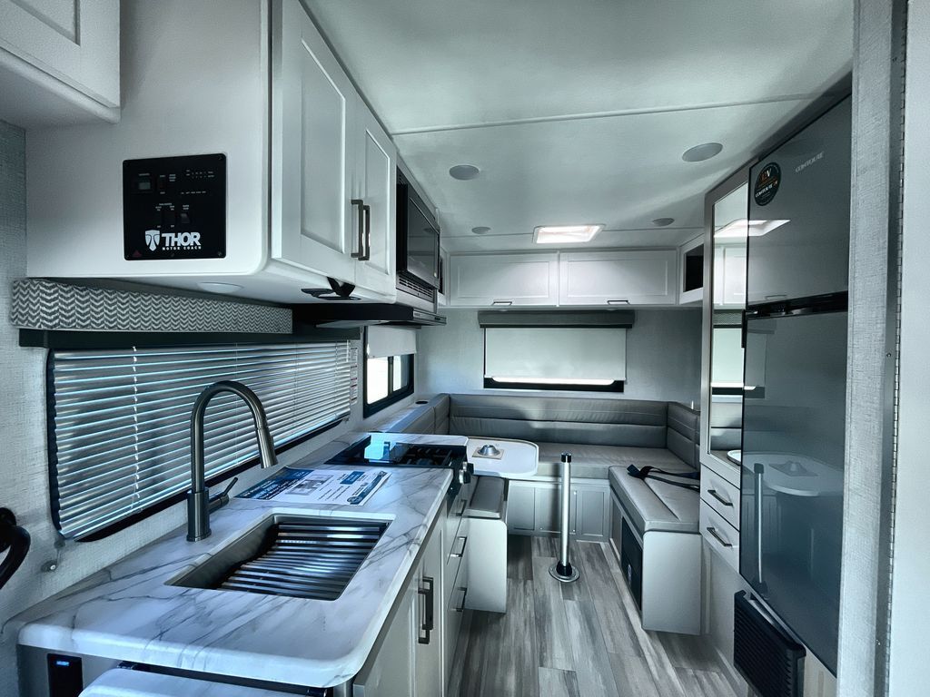 You will feel right at home in every one of these Thor Motor Coach Geneva Class C gas motorhomes! The Ford E-Series chassis holds them together and you can easily tow a car or trailer with the 8,000 lb. hitch. A premium one-piece roofing material and welded tubular aluminum roof and sidewall cage construction will hold up for years to come. Each model has unique living area arrangements, fully equipped kitchens, and residential vinyl flooring that are easy to clean. The touchscreen dash radio and back-up monitor lets you play your favorite tunes and prevent any bumps or dings. Come choose your favorite one today!