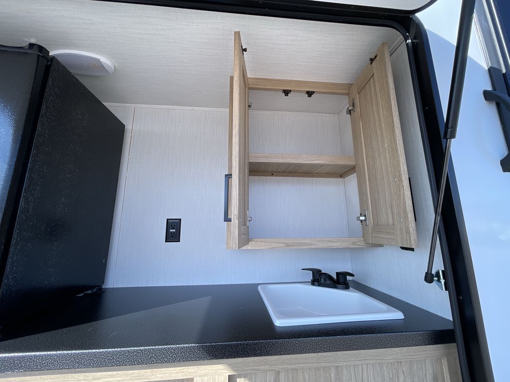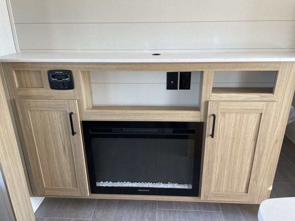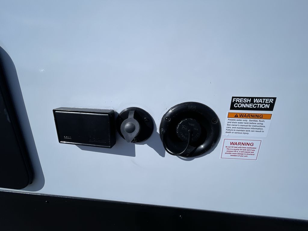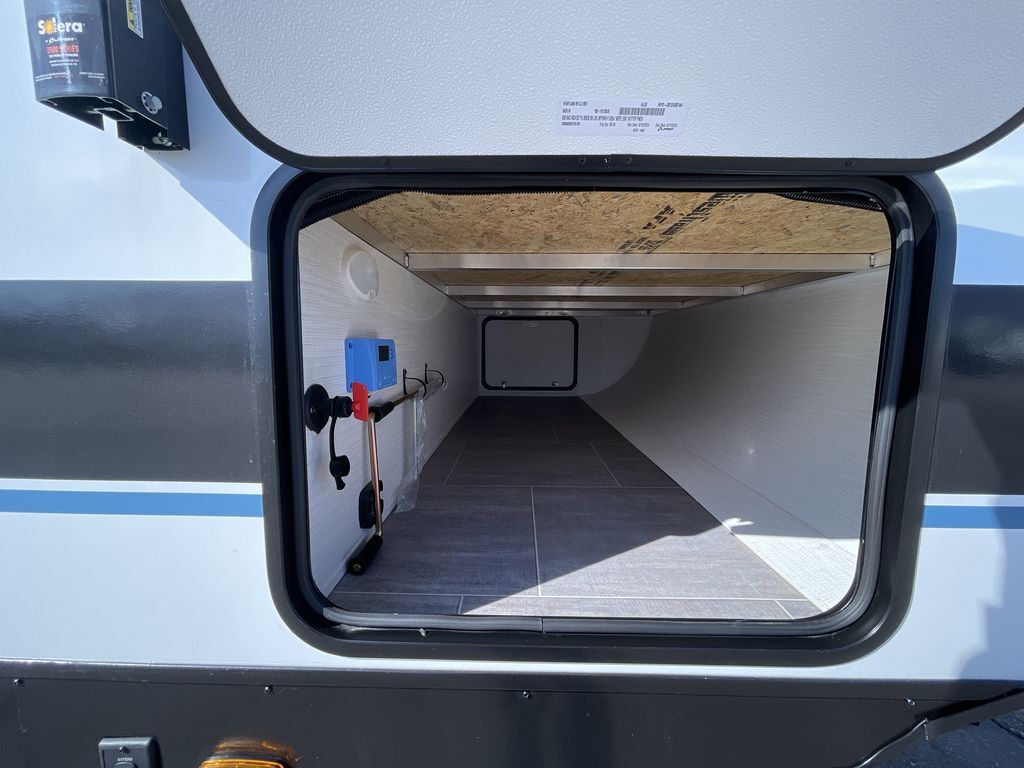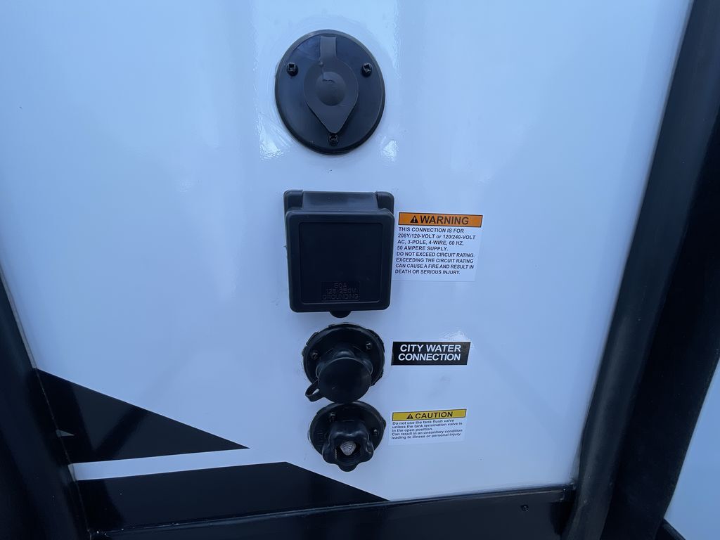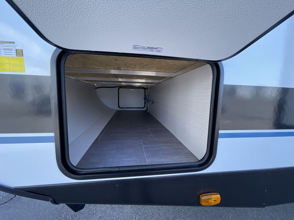 One look at this travel trailer and you'll be hooked! The front private bedroom with a queen bed provides a place for you to retreat to each night, and the full bath will let you freshen up in the morning. One of the dual entry doors is even found in the bath for added convenience! The little ones or your guests will have the bunkhouse to themselves with a total of four bunks and chairs below the flip-up bunk so they can relax. A full kitchen, complete with a three burner cooktop, microwave oven, and farmhouse sink will be perfect for meal times, or you can head outdoors to cook at the outdoor kitchen. In the evening, you can relax on the sofa or play a game at the booth dinette!