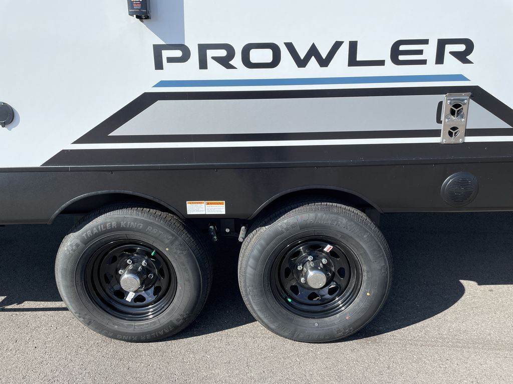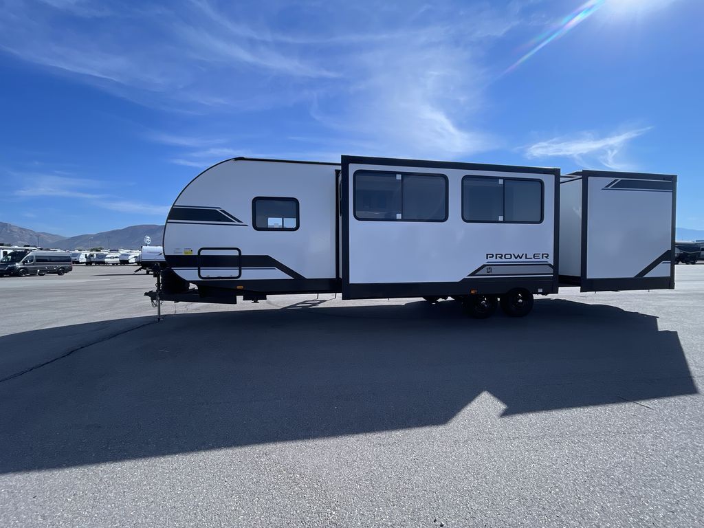 Get ready for comfortable and easy camping with the Prowler travel trailers by Heartland. These models feature durable construction with a performastructure aluminum front wall, a cambered structural steel I-beam frame, and a fully walkable roof. The MEGA bright pass-through storage features 52 cu. ft. of exterior storage with mega sized access doors, LED lights, and a finished interior to keep your gear secure. You'll fall in love with the at-home kitchen the includes Duralast countertops, a residential refrigerator, plus a stainless steel double bowl undermount sink for easy clean-up. These travel trailers also feature panoramic windows, an EZ clean interior, USB charging ports throughout, and many more comforts! Don't let the Prowler travel trailers slip away. Don't let the Prowler travel trailers slip away. Choose your favorite floorplan today!