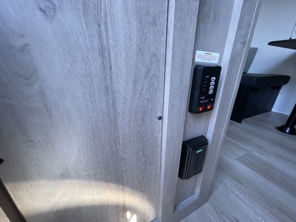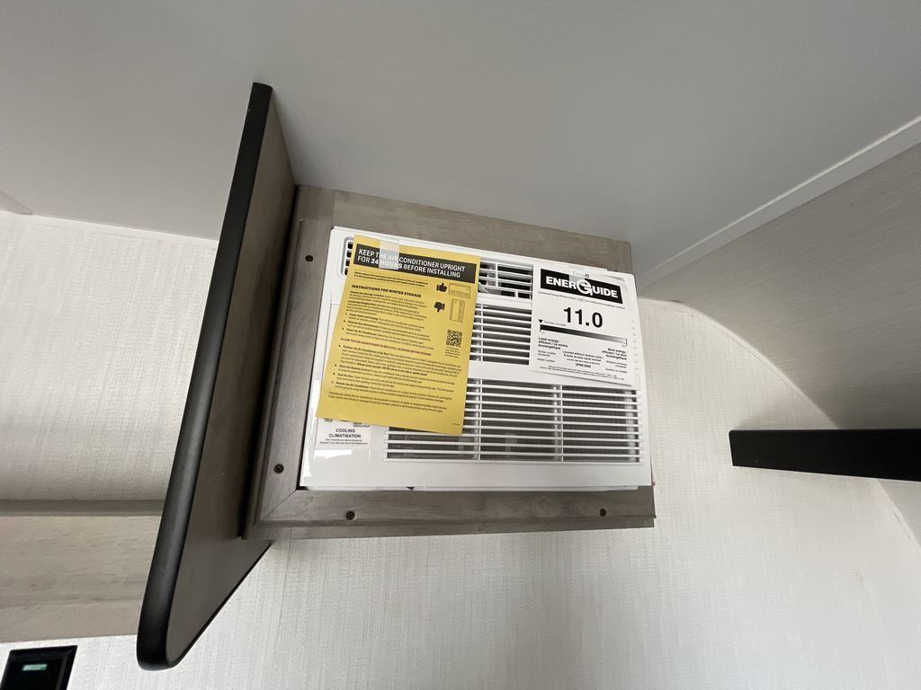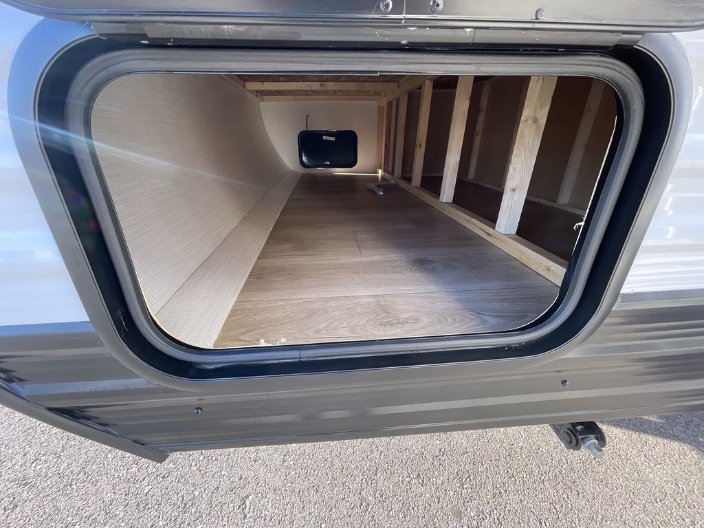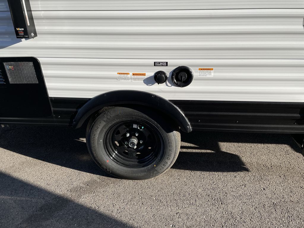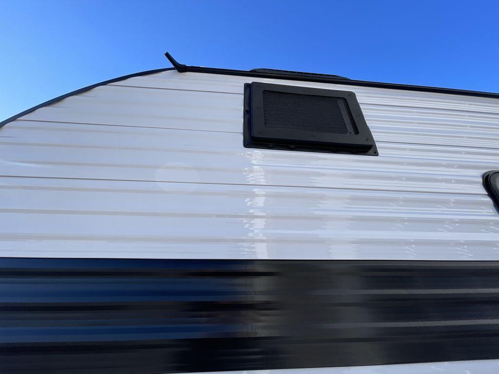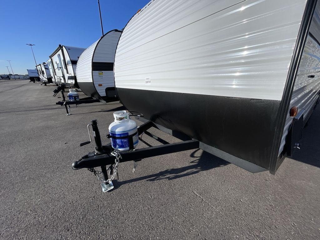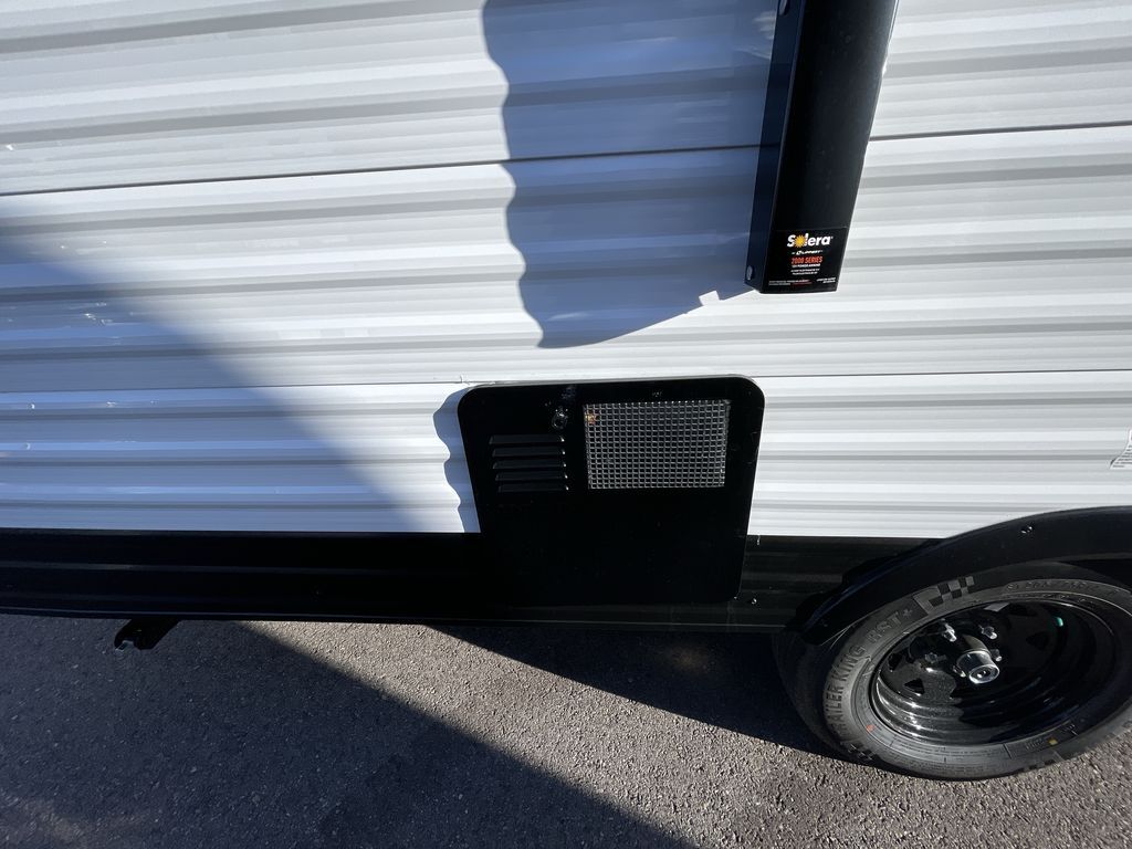 Lightweight towing and cozy camping is possible with this travel trailer! You will love having your own front queen bed to sleep on each night, and there are bunk beds in the rear corner for the little ones or your guests. A booth dinette provides a place to dine, play board games, and even sleep another guest if needed. The chef of your group can whip up meals on the two burner cooktop, and there is a 3.3 cu. ft. 12V residential refrigerator to keep food fresh. This model also includes a private bath with a shower and toilet so you don't have to use the camp's facilities at night!