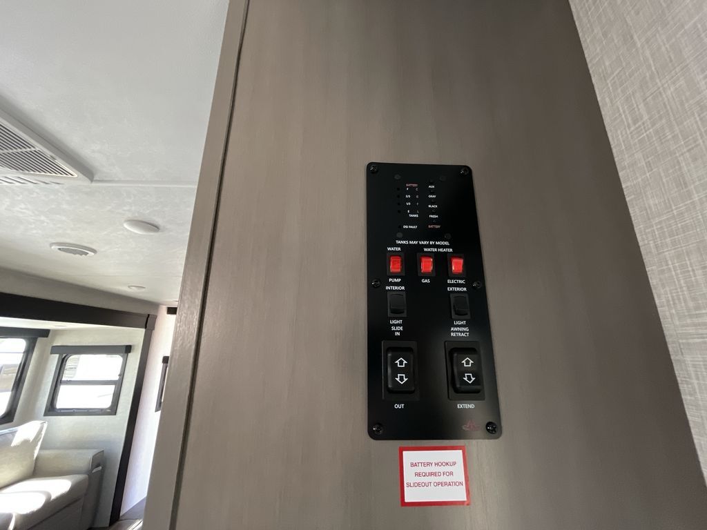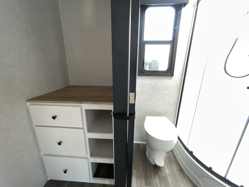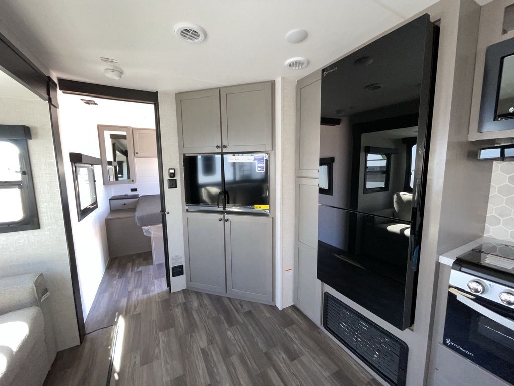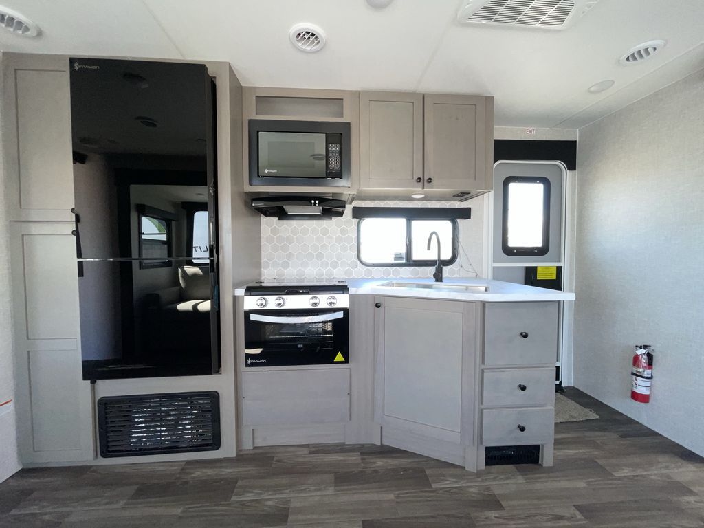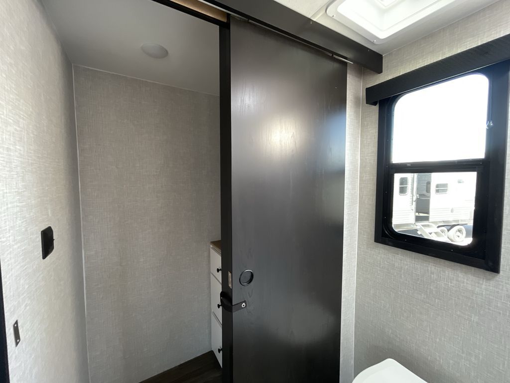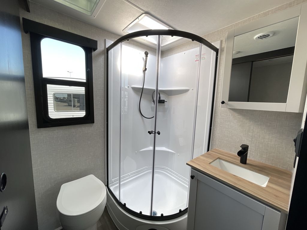 Convenience, space, and lots of camping amenities are wrapped up in this Super Lite so you can enjoy outdoor activities and inside comfort each day you are camping! There is a spacious rear bathroom that includes a walk-in closet, dual entry doors for a smooth flow of traffic in and out especially when your friends joined you, and a large slide with furniture giving you more interior floor space. The cook will have full amenities to feed everyone including a 10 cu. ft. 12V refrigerator to store the cold items, a single basin stainless steel under-mount kitchen sink, and everyone can play games at the U-shaped dinette or outside under the 20' power awning. And at night, you will have a queen bed with storage under the bed as well as beside wardrobes, USB ports and electrical outlets to keep everything charged, and a second entry into the trailer.