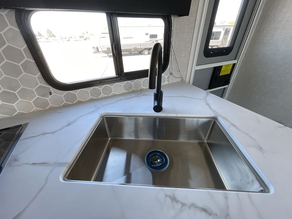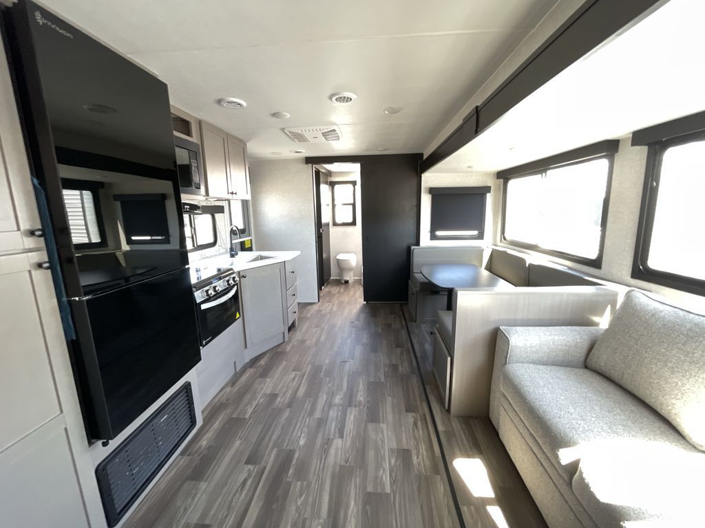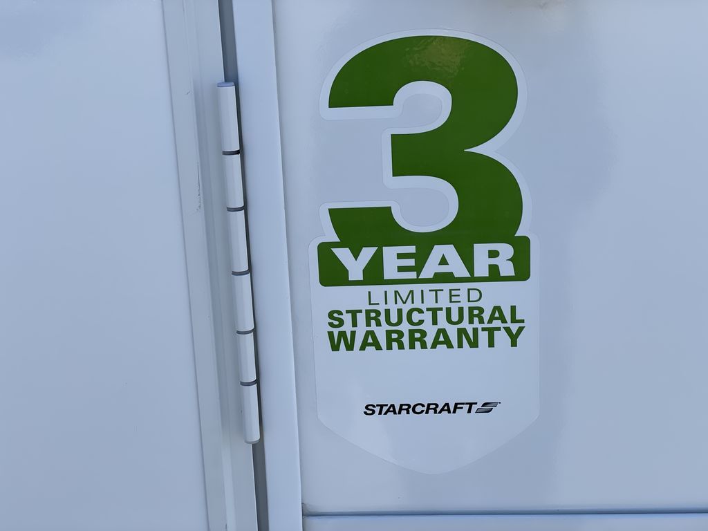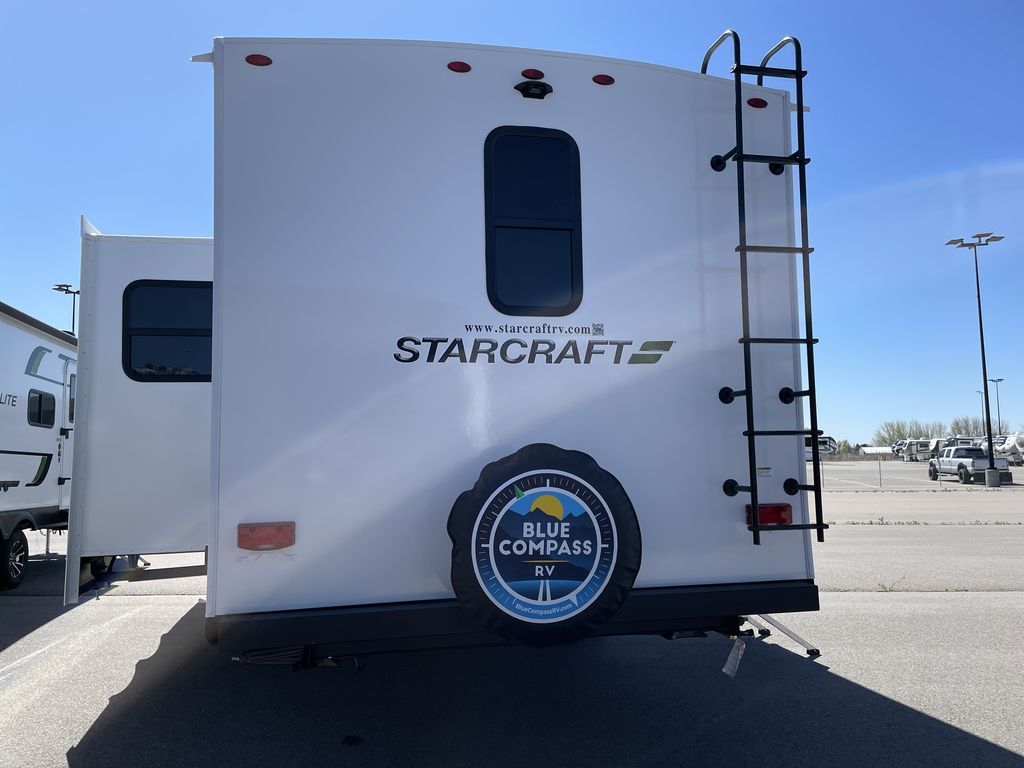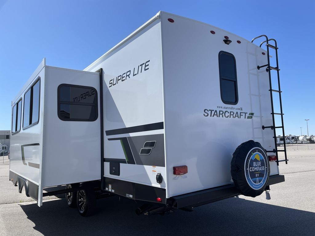 With any Starcraft Super Lite travel trailer, the solid and lightweight construction includes a fully walkable roof with a PVC roofing membrane that easily reflects solar heat and UV rays and TuffShell vacuum bonded laminated construction, reinforced with heavy-duty fiberglass and welded aluminum frames. There is also a molded front cap with LED lighting to protect against elements, a power tongue jack for easy towing, plus a power awning with LED lighting. The interior is spacious with an 81" living room ceiling height, hardwood cabinet doors, and flush floor slides with residential vinyl flooring and pressed membrane countertops for easy cleanup. Don't wait for your next adventure, take a Super Lite with you today!