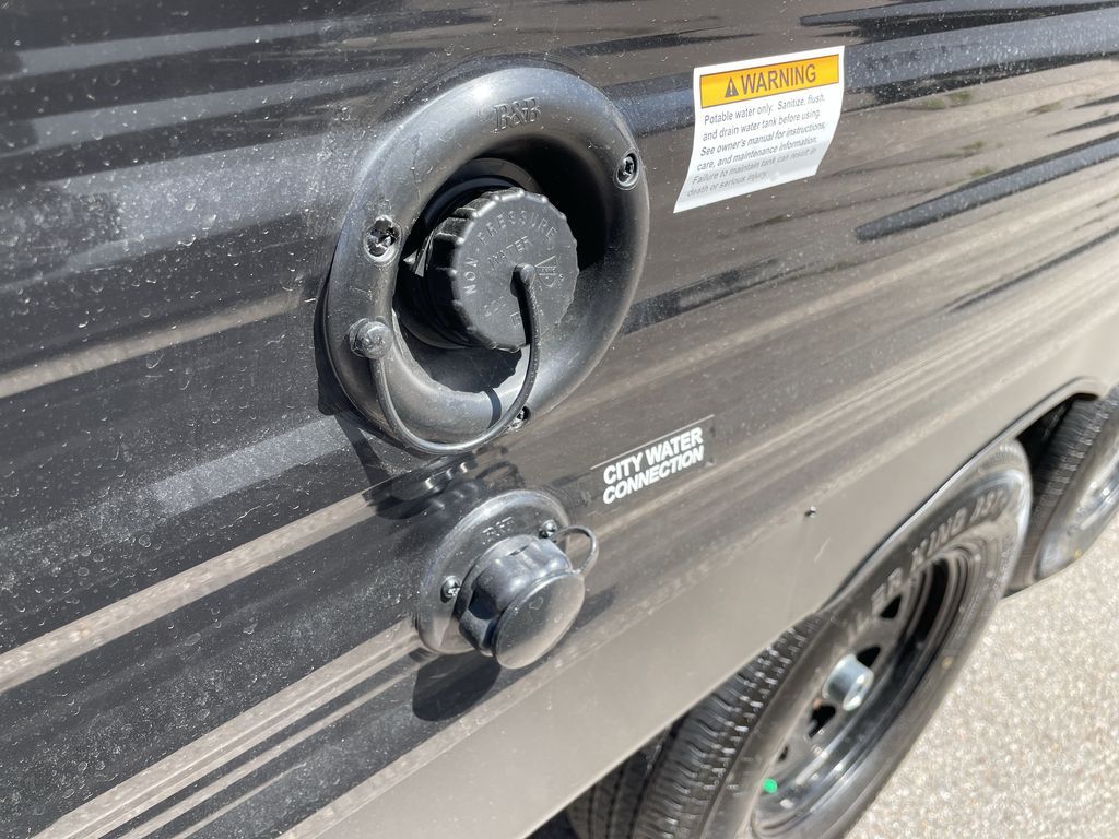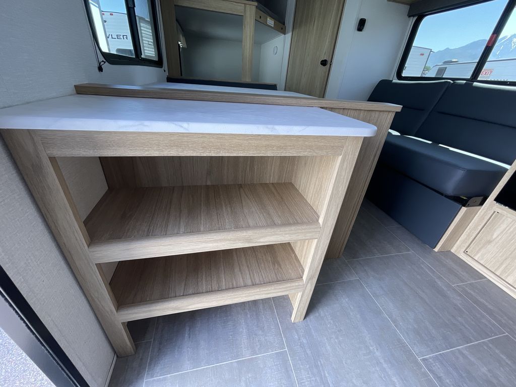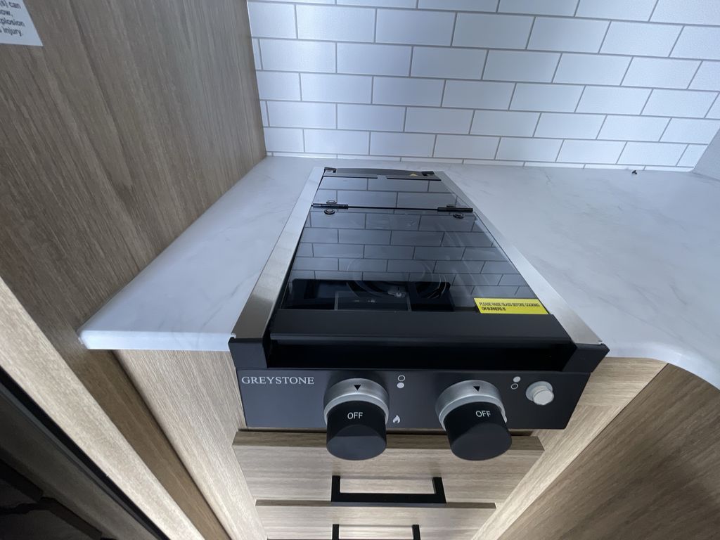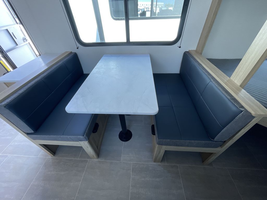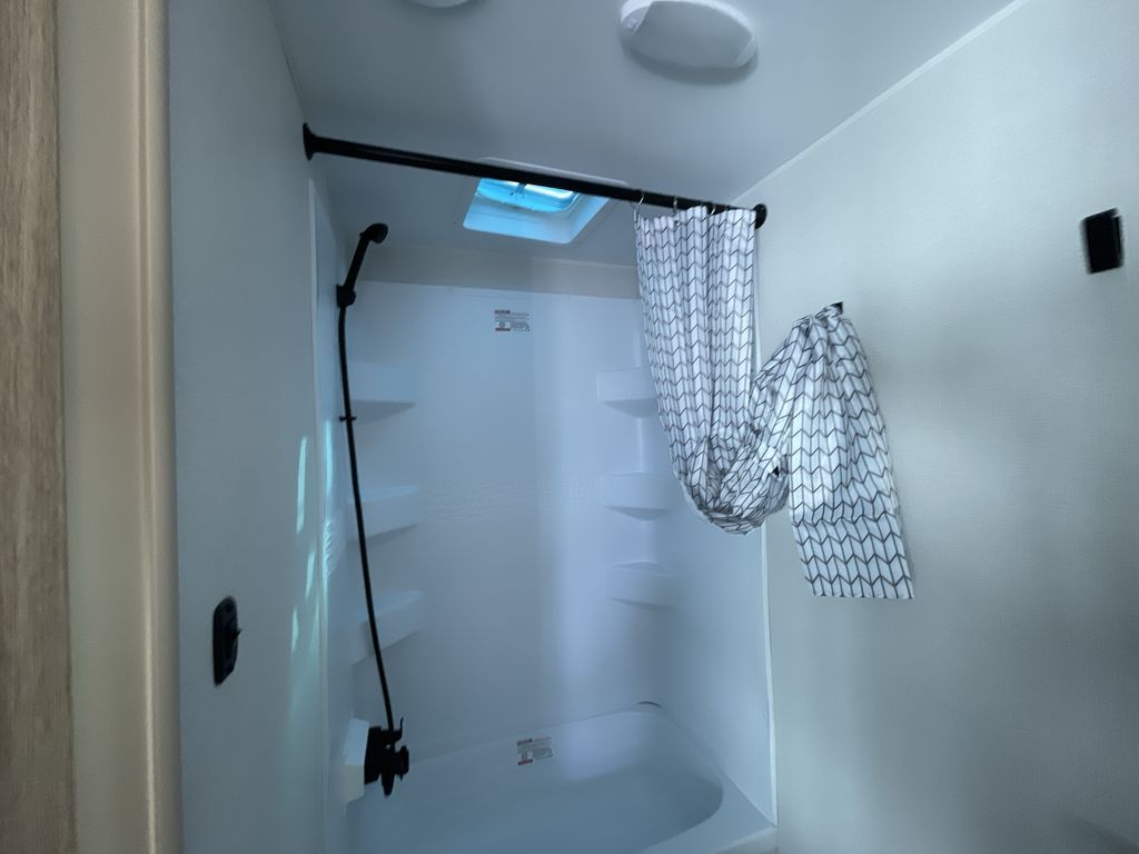 If you enjoy camping with a larger group of friends or family, this travel trailer is the one! You will love having your own front queen bed to sleep on each night, and there are double-size bunks in the rear corner for the little ones or your guests. A booth dinette provides a place to dine, play board games, and even sleep another guest if needed, and there is also a sofa to relax on. The chef of your group can whip up meals on the two burner cooktop, and there is a 12V residential refrigerator to keep food fresh. This model also includes a private bath with a shower and toilet so you don't have to use the camp's facilities at night!