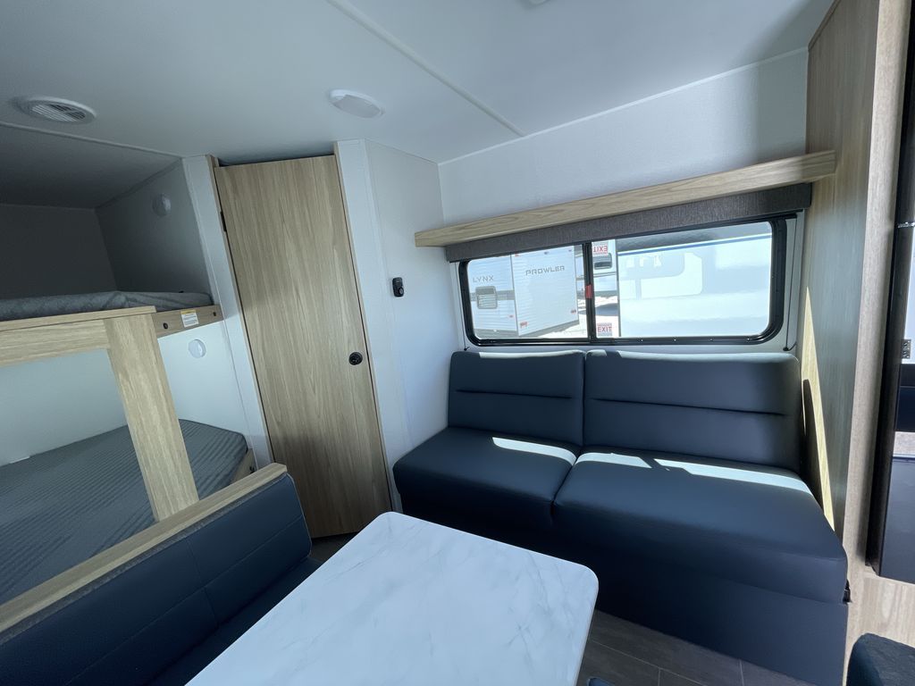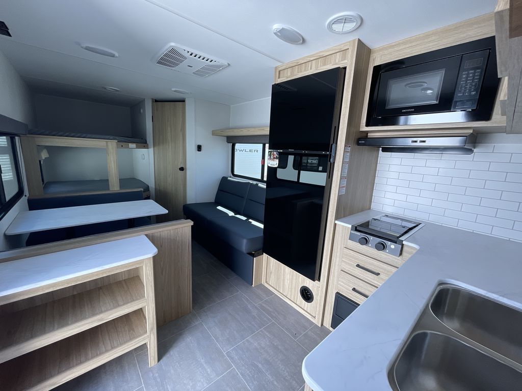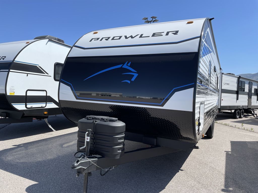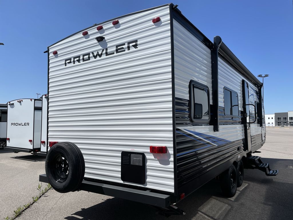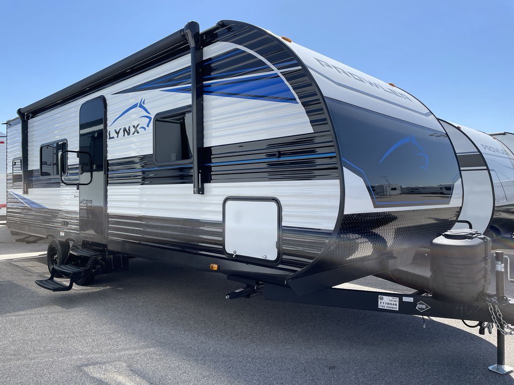 Get ready for comfortable and easy camping with the Prowler Lynx travel trailers by Heartland. Each model includes full bath and kitchen amenities, comfortable seating and sleeping spaces, and plenty of storage spaces that will help you keep camp gear and personal belongings clean and neat! The power awning with an LED light strip outdoors will provide shade when you need it, and the LED interior lights will keep your space well lit. These units also include USB ports to keep your electronics charge, a systems monitor panel, night shades in the living area and bedroom, plus many more conveniences to make life at the campground easier than ever!