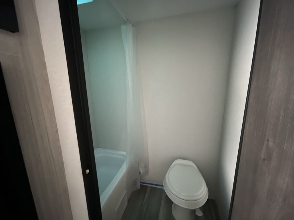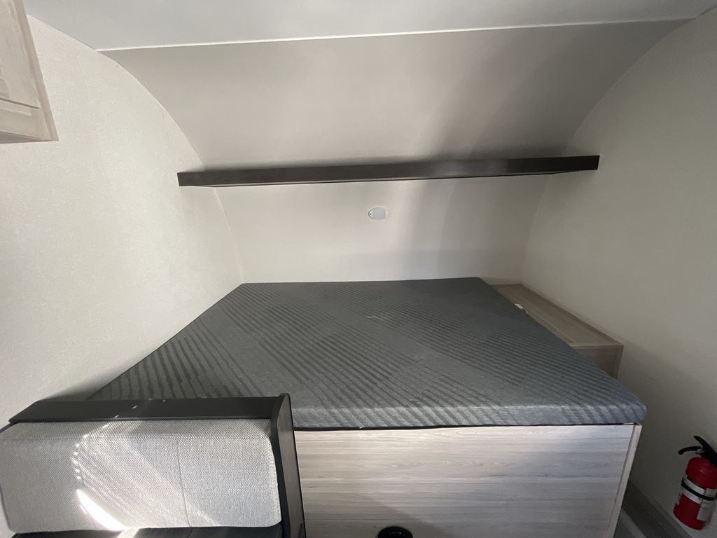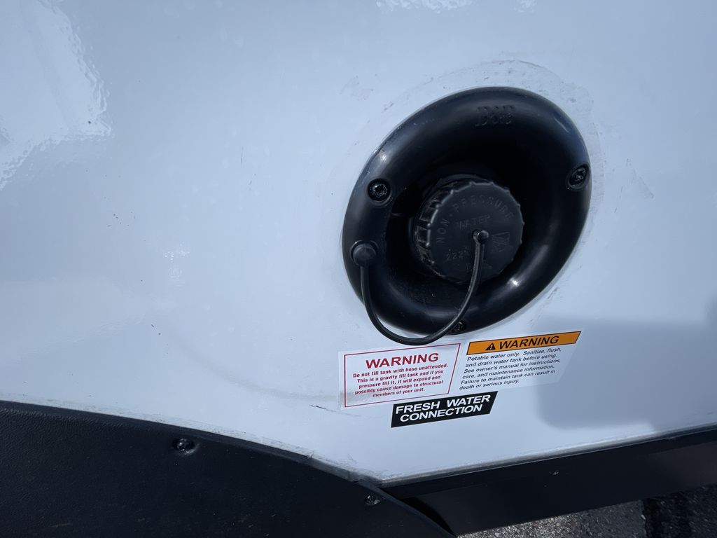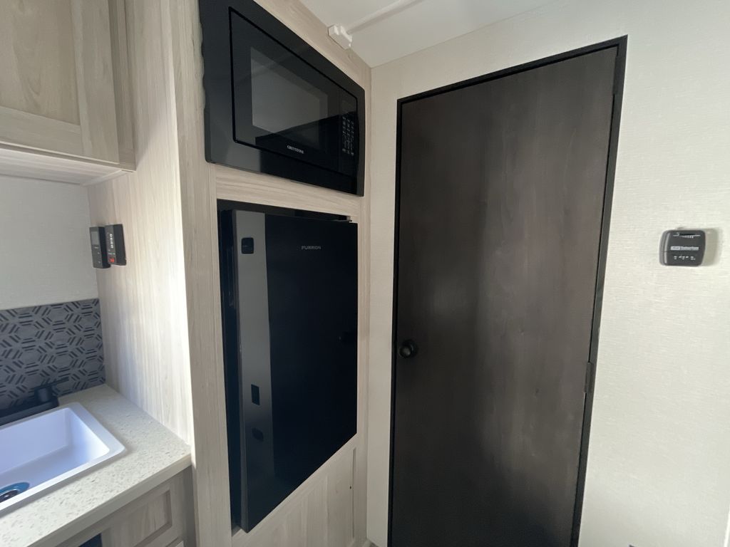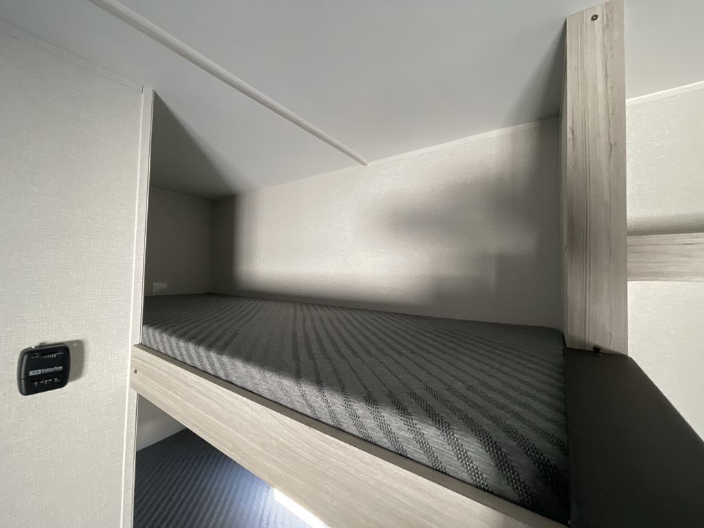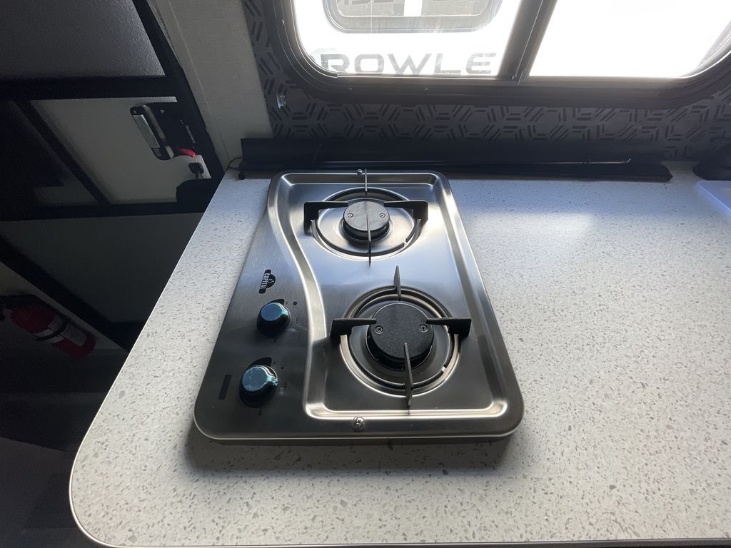 You'll love every minute spent in this travel trailer that can sleep five each night. There are bunk beds towards the back right beside the private bath for easy nighttime use. The queen bed up front will provide a great night's rest, and the booth dinette can double as dining and sleeping space. A two burner cooktop will let you cook meals each day, and there is a 3.3 cu. ft. 12V refrigerator for perishables.