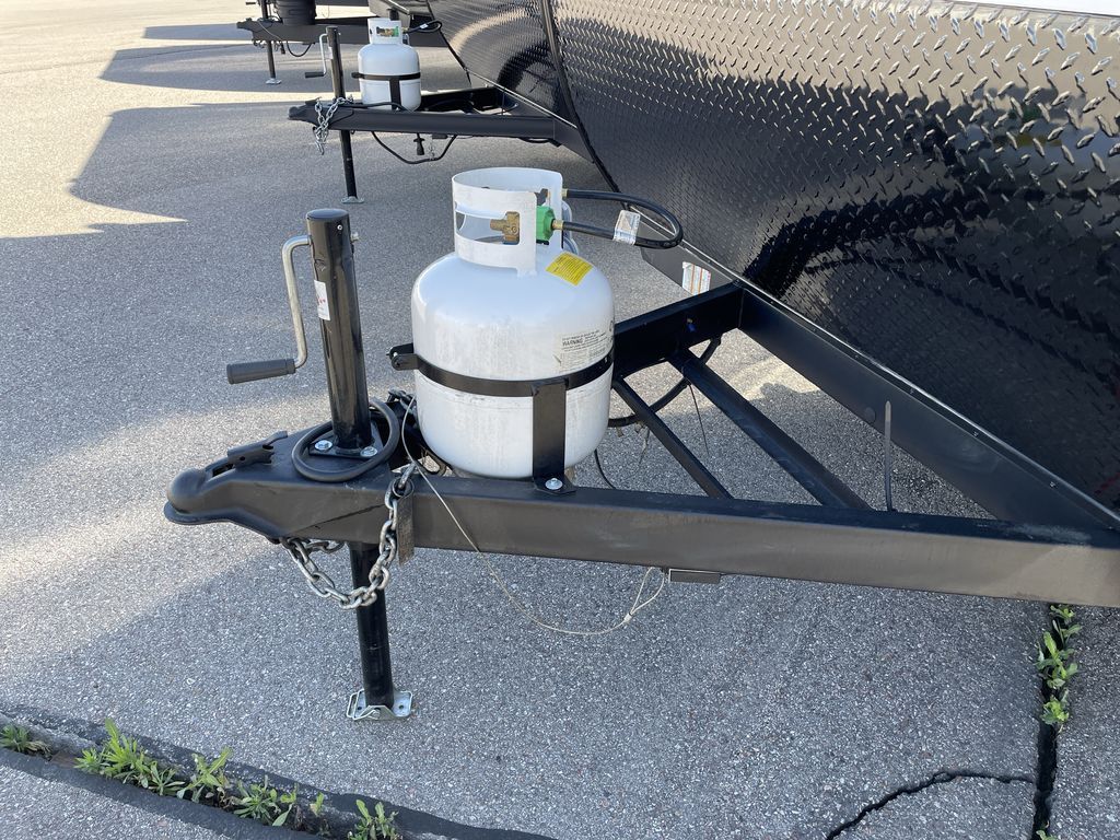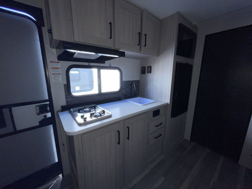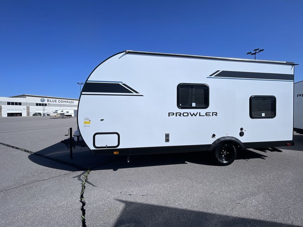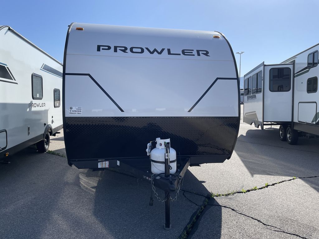 Get ready for comfortable and easy camping with the Prowler travel trailers by Heartland. The exterior features a power awning with LED lighting, stabilizer jacks, and diamond plate rock guard to help protect against rock and debris on the way to the campground. There is also a ladder and rear camera prep, an 8K roof mounted A/C, and a 20 lb. LP tank. Inside, you'll enjoy the dimmable LED ceiling lighting to keep your space well lit, and the on-demand water heater will provide endless hot showers.
