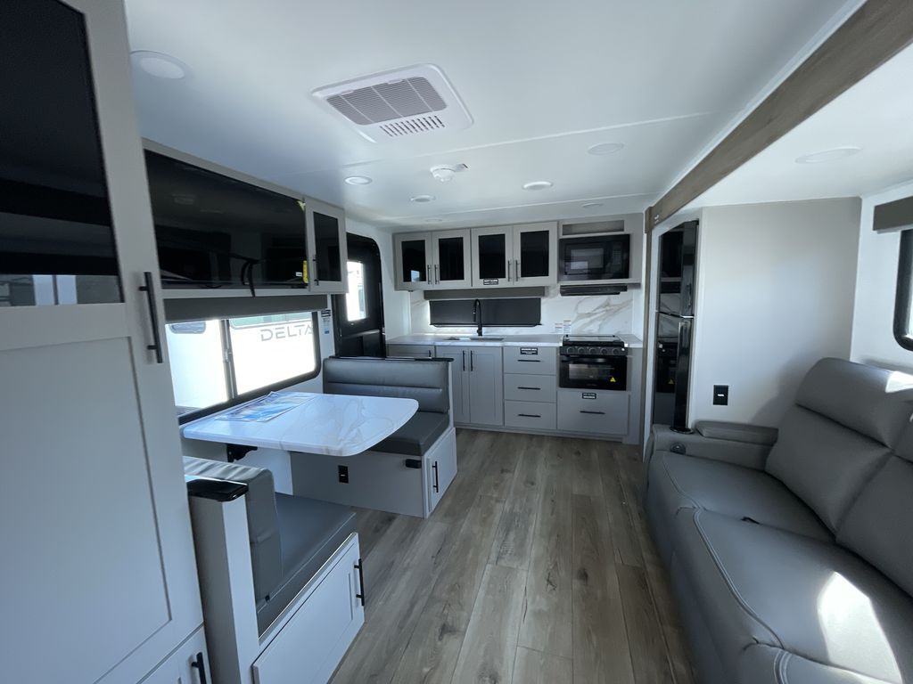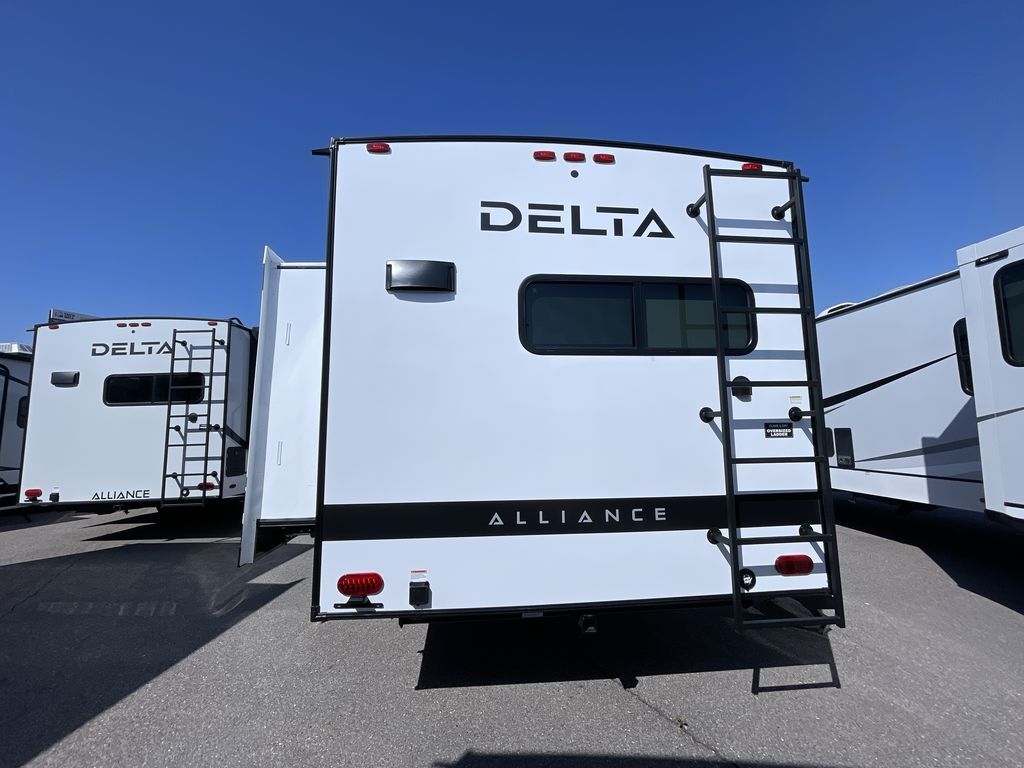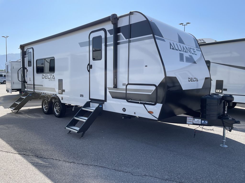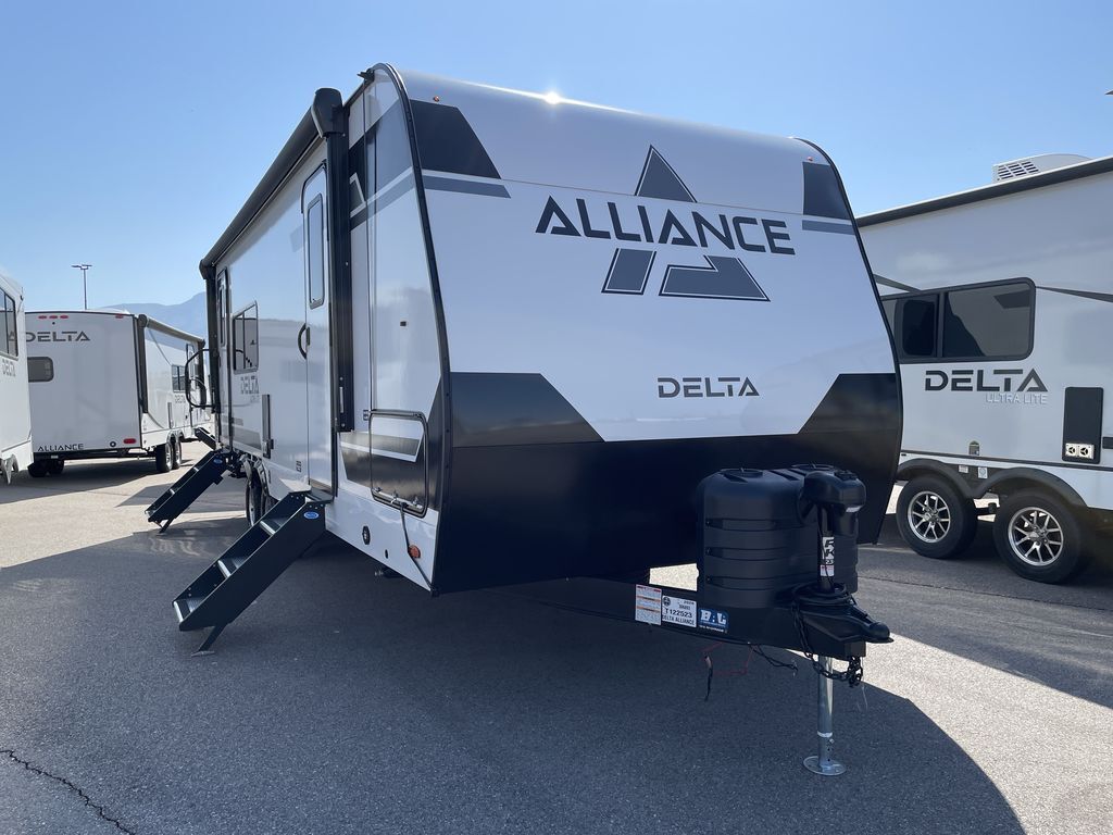 Form and function works together with every one of these Alliance RV Delta travel trailers! They are built with a walk-on roof with a seamless PVC roof covering, Mylar reinforced exterior seals, and a heated and enclosed underbelly to protect your unit in all seasons. The commercial grade vinyl flooring will be easy to clean and the oversized atrium windows throughout let in plenty of natural sunlight. With 62 cu. ft. of drop frame pass-through storage, you can bring along all of your essential camping gear plus it has USB charging for more convenience. There are many at home interior conveniences including a Bluetooth speaker, USB charging throughout, and even a pull-out kitchen trash can. Come find your favorite model today!