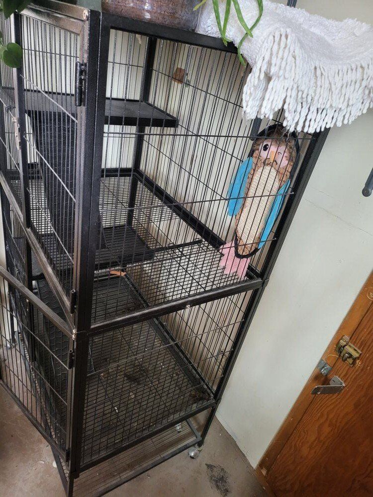 Three level critter cage. In great shape is on wheels can move around. Bottom try for easy cleaning.
