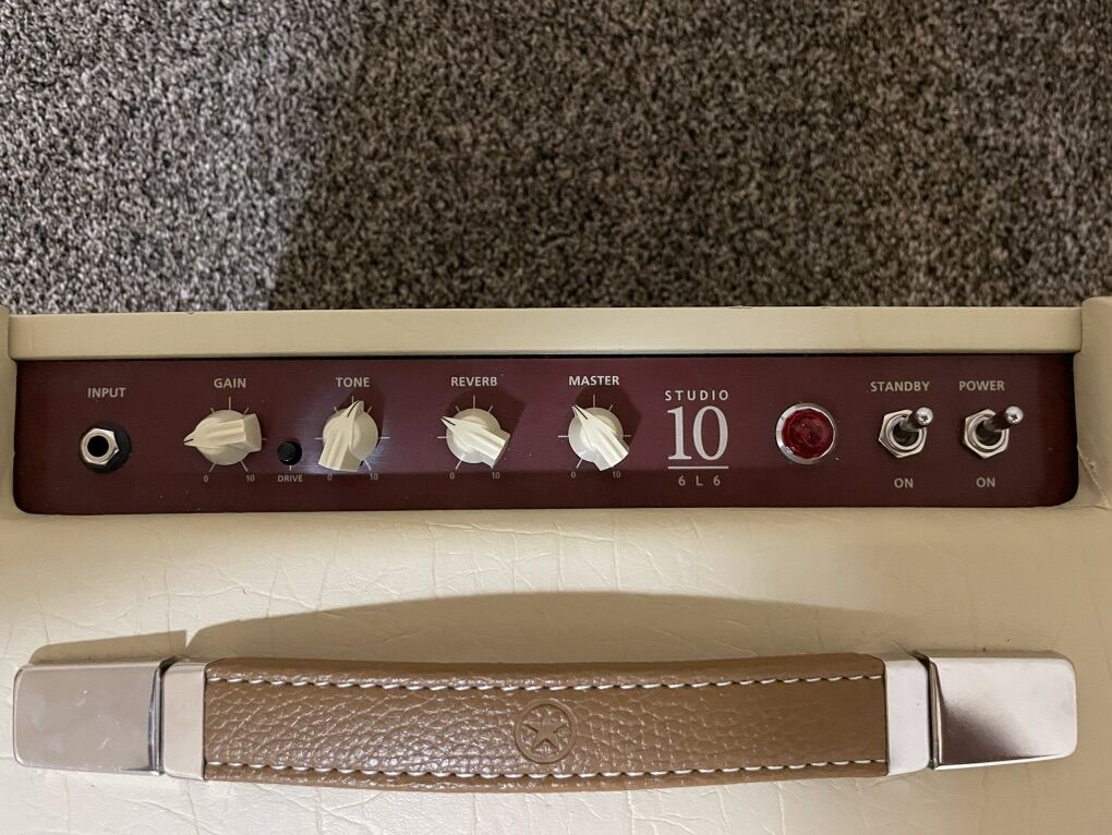 VenmoThis is a 6L6 version of the studio 10 watt amp with a 13” speaker. It’s very Fenderish sounding with beautiful cleans. It has a second channel for overdrive sounds and a foot switch for channel selection. Perfect for at home or small stages. These are very sought after small amps going for 5 to 6 hundred on the used market.