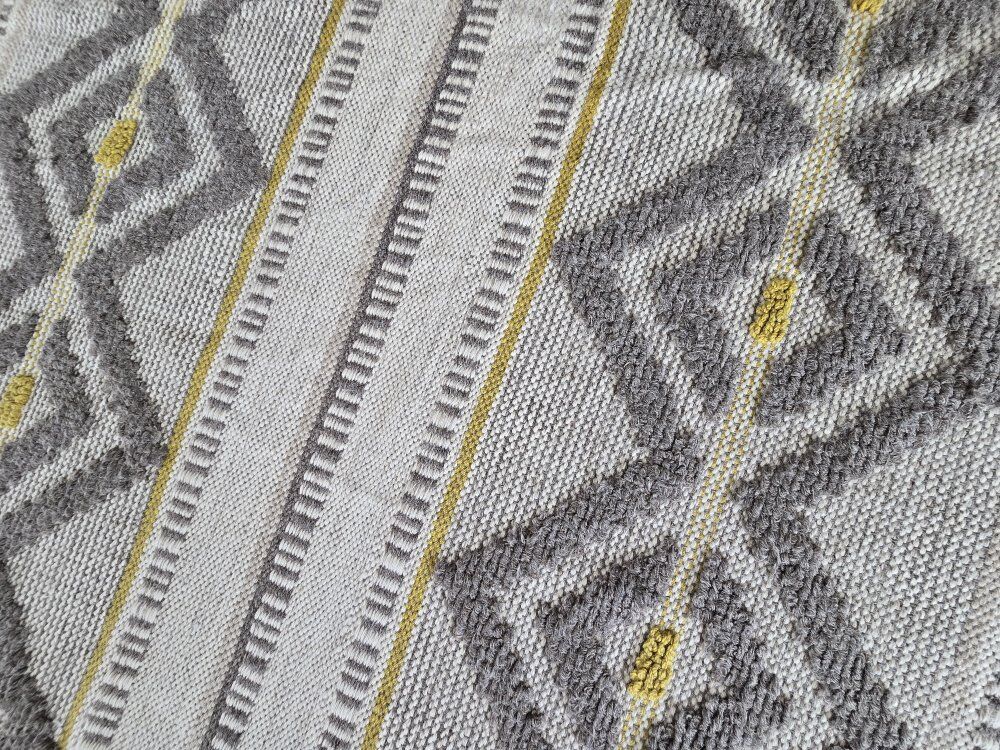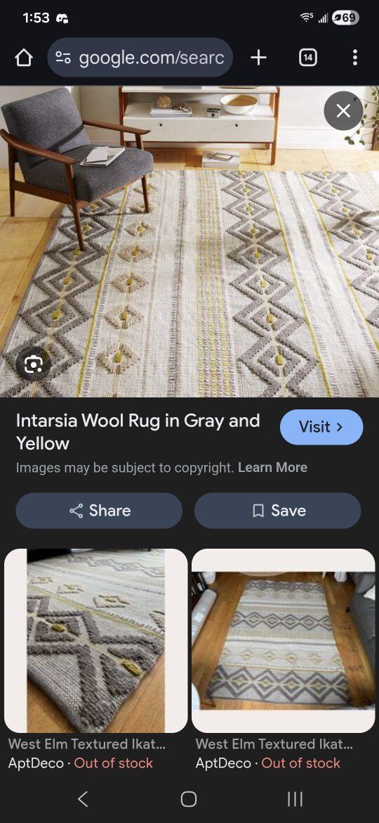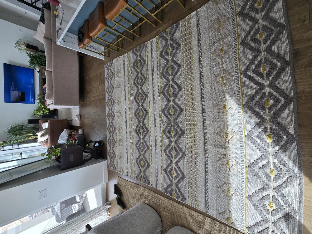 ZelleWest Elm Intarsia 8x10 Handcrafted Wool Rug. $400 OBO (paid $600 receipt included) has some rug tape residue on 2 of the back side corners.