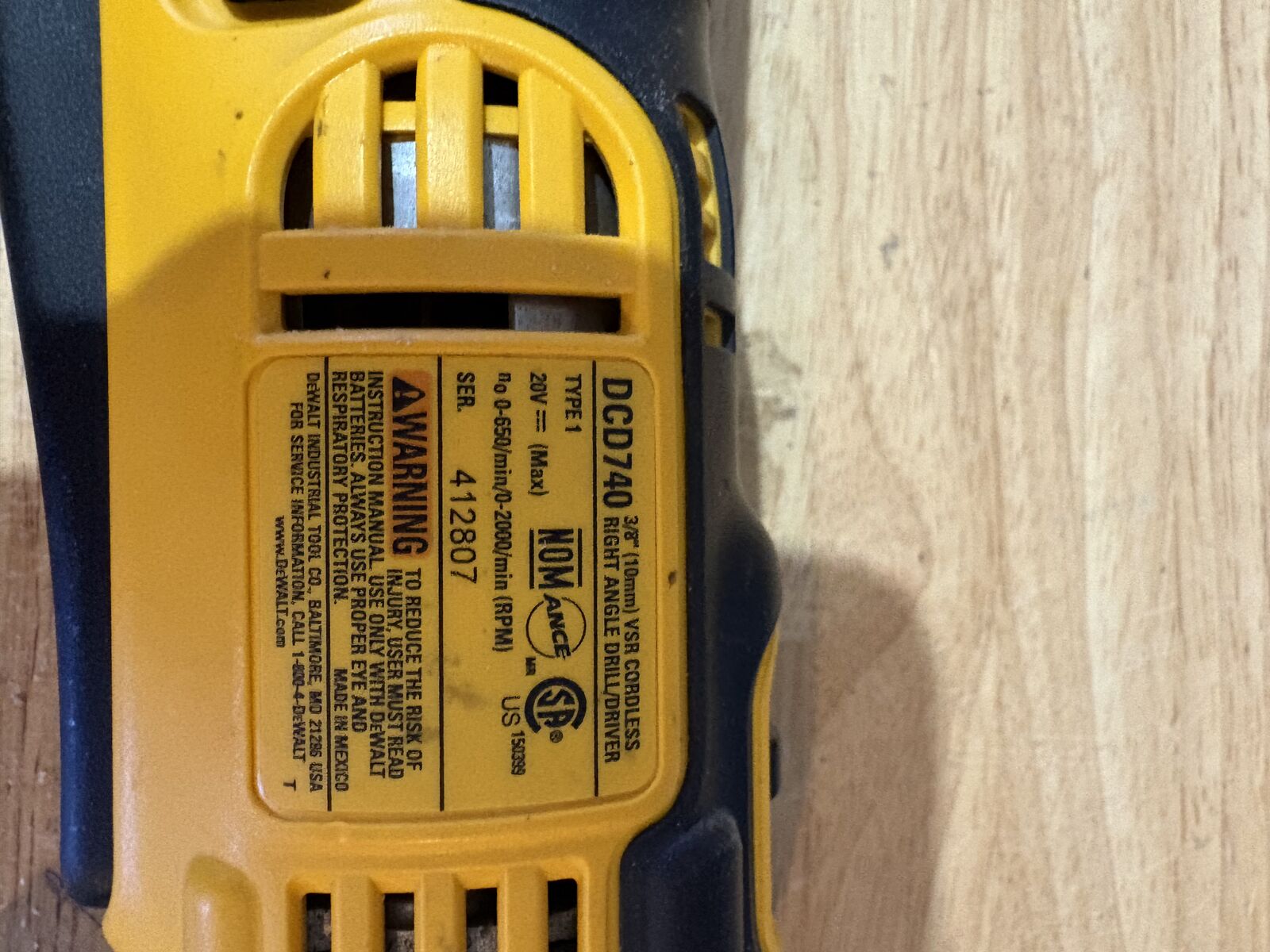 PayPalDeWalt right angle 3/8" drill 20 volt cordless drill. Rarely used and no longer need. Model DCD740