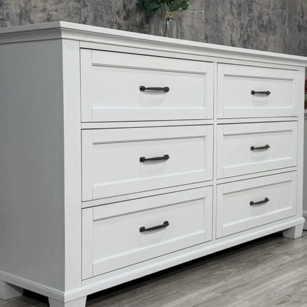 Features: Color: Soft Gray Finish Constructed From Rubberwood Solids With Birch Veneers Two Storage Drawers With English Dovetail Construction and Soft-Close Drawer Guides Graphite Toned Hardware Bed